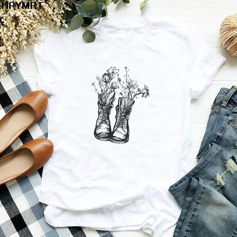 Женская Новинка 2020 harajuku белая футболка с винтажным цветочным ...