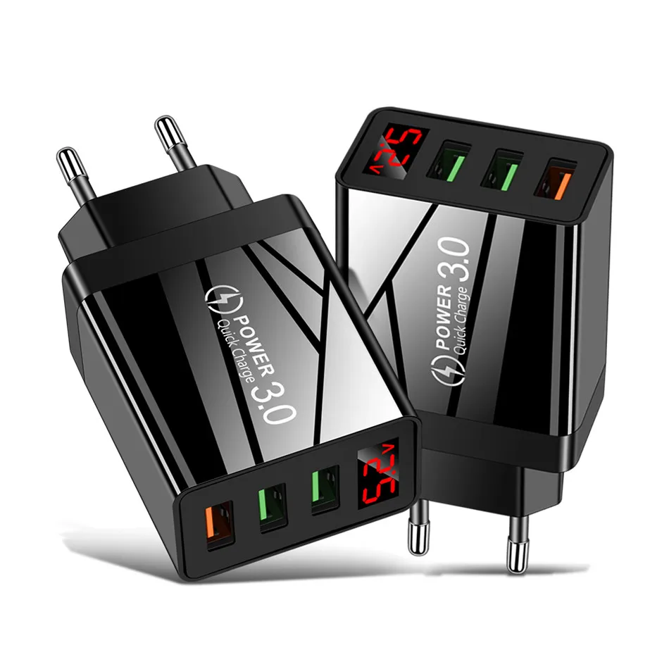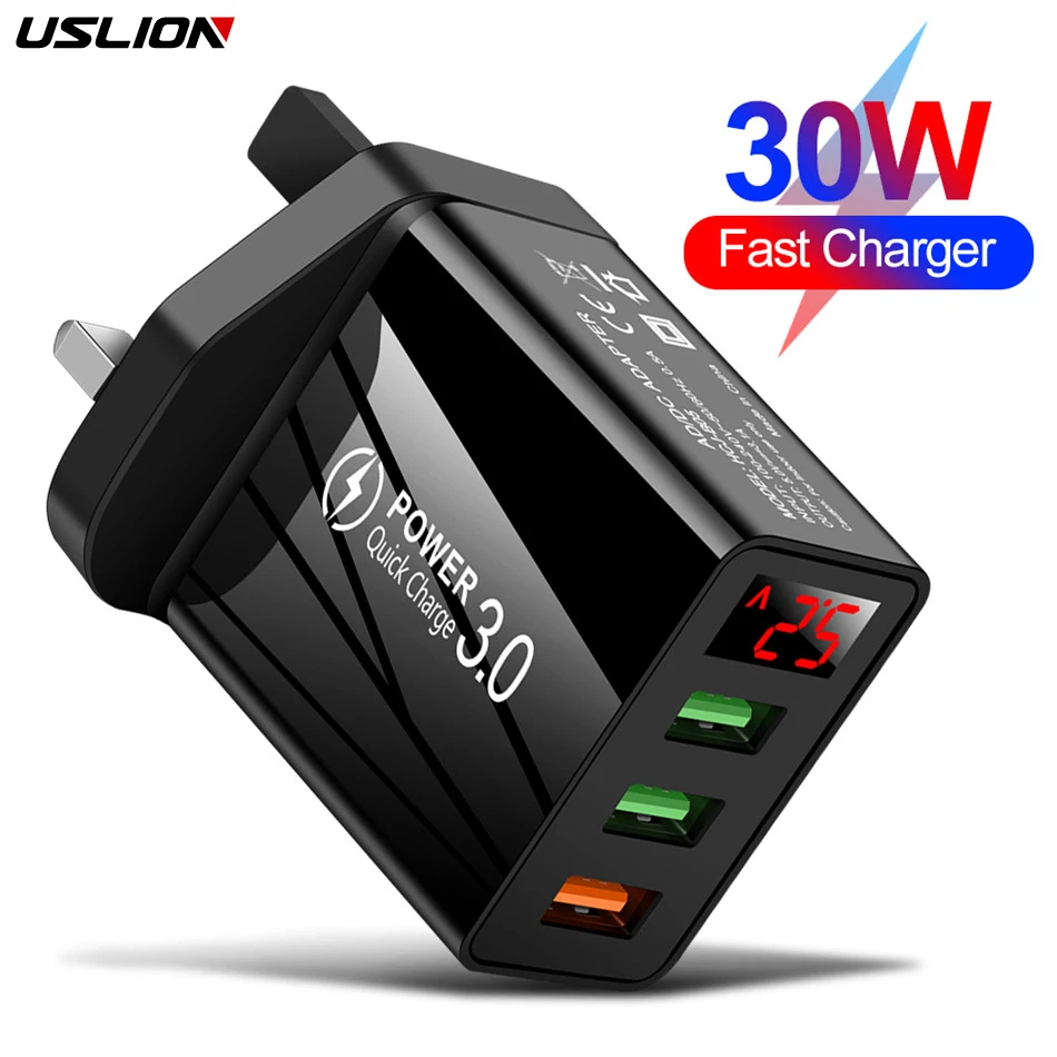 Зарядное устройство USB 30 Вт со светодиодным дисплеем, дорожное зарядное устройство для телефона, быстрое настенное зарядное устройство для планшета с 3 usb-портами для iphone 12