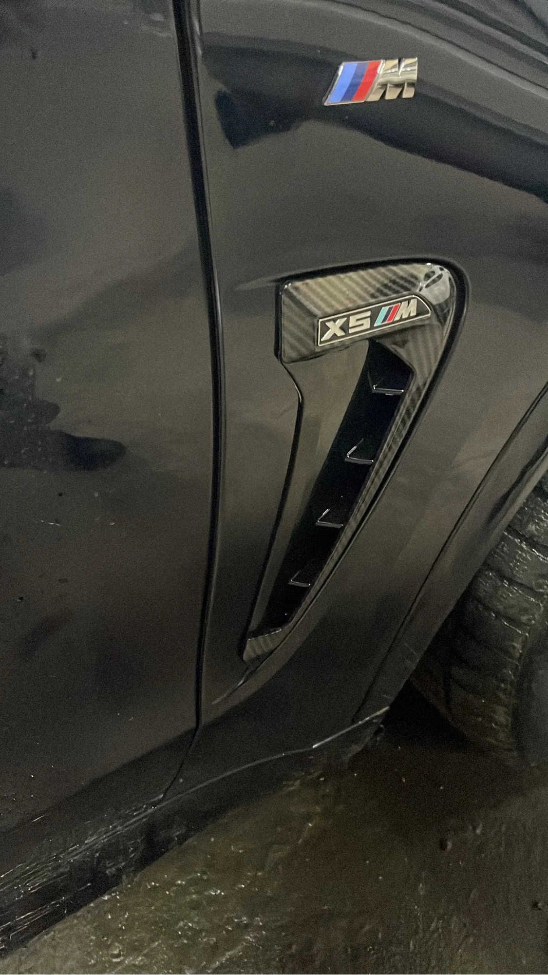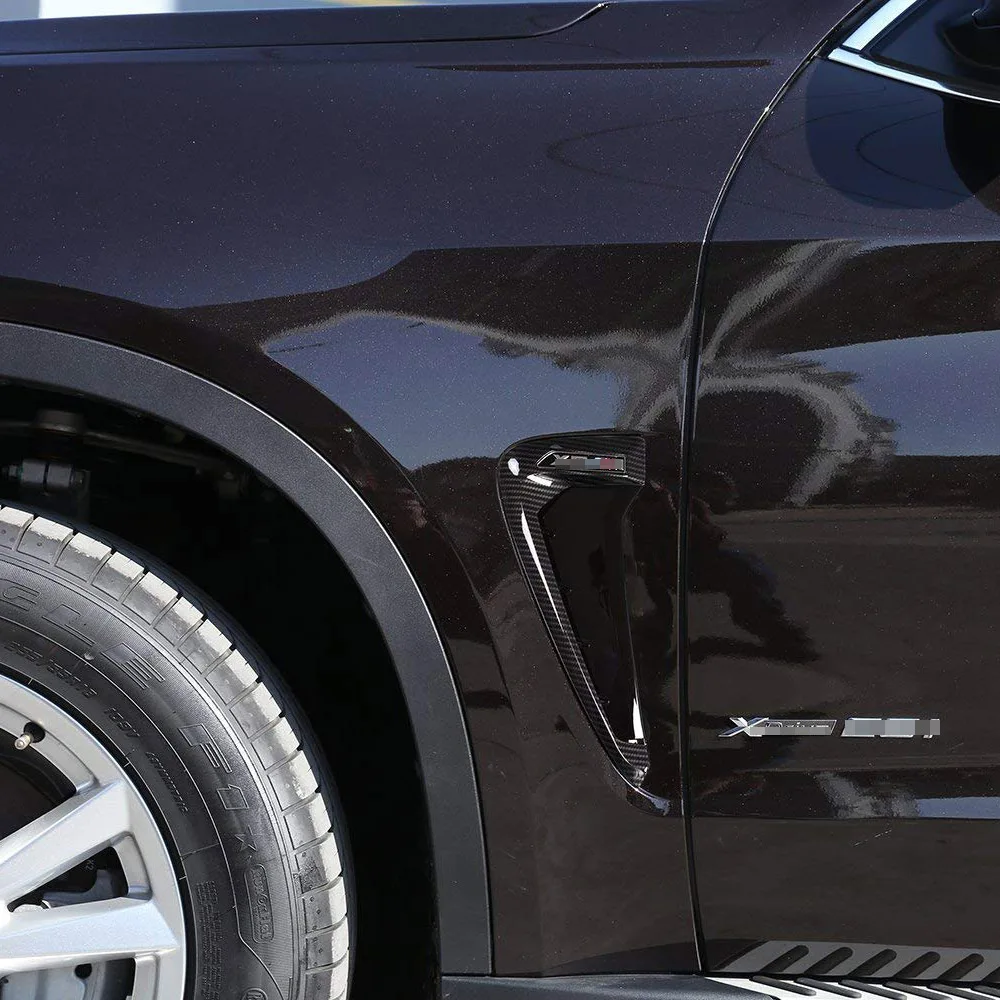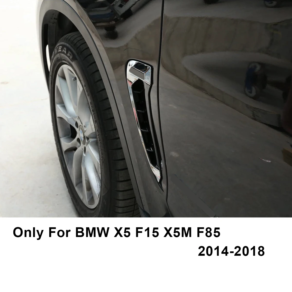 Наклейка на боковое крыло автомобиля, 1 пара, накладка на вентиляционное отверстие, эмблема для BMW X5, F15, X5M, F85, 2014-2018, хромированная Акула, жаберная, на боковое отверстие