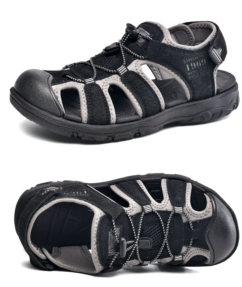 Сандалии мужские из кожи и бархата, Нескользящие, спортивные, дышащ...