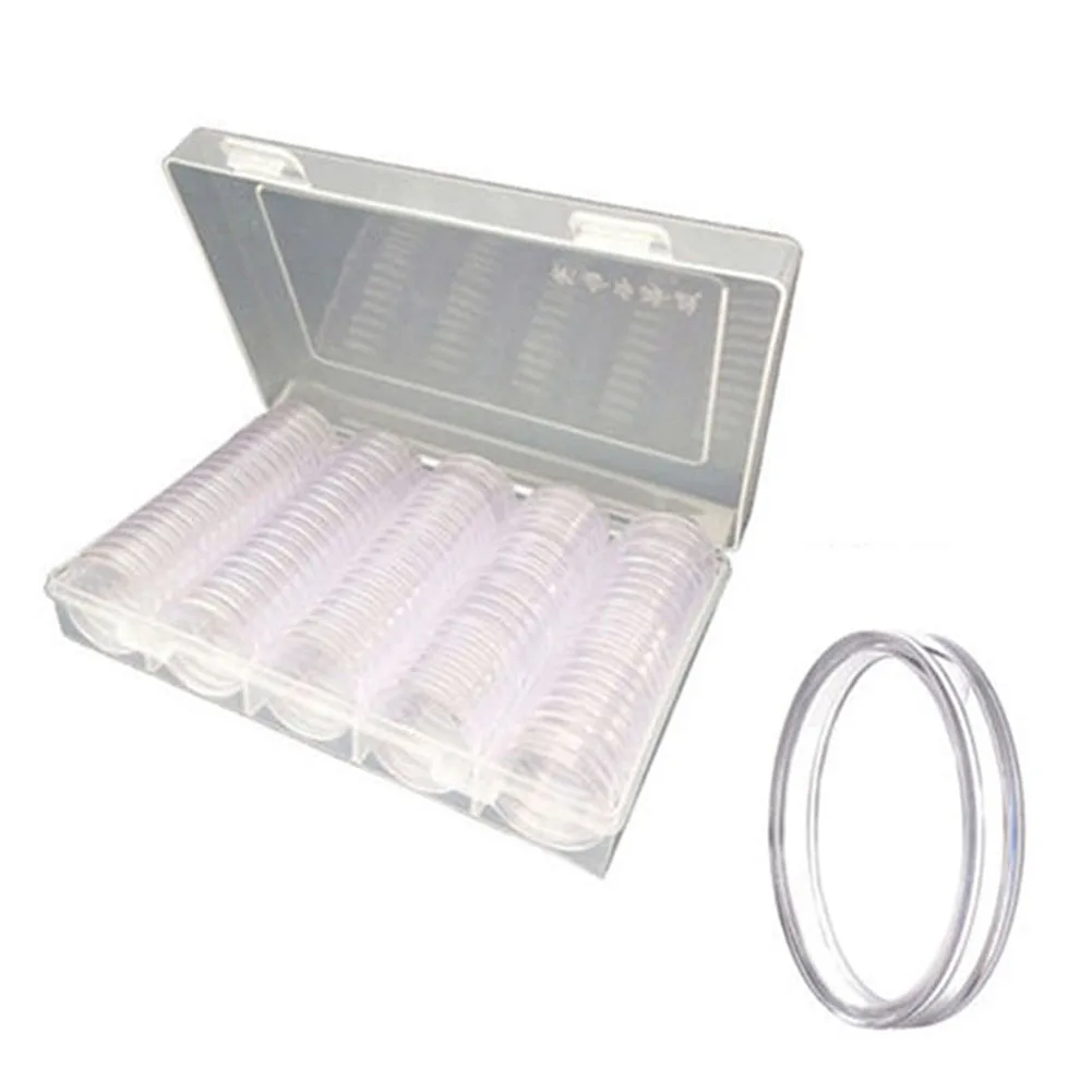 100 капсул для монет 27 мм, круглая коробка, пластиковый коллекцион...