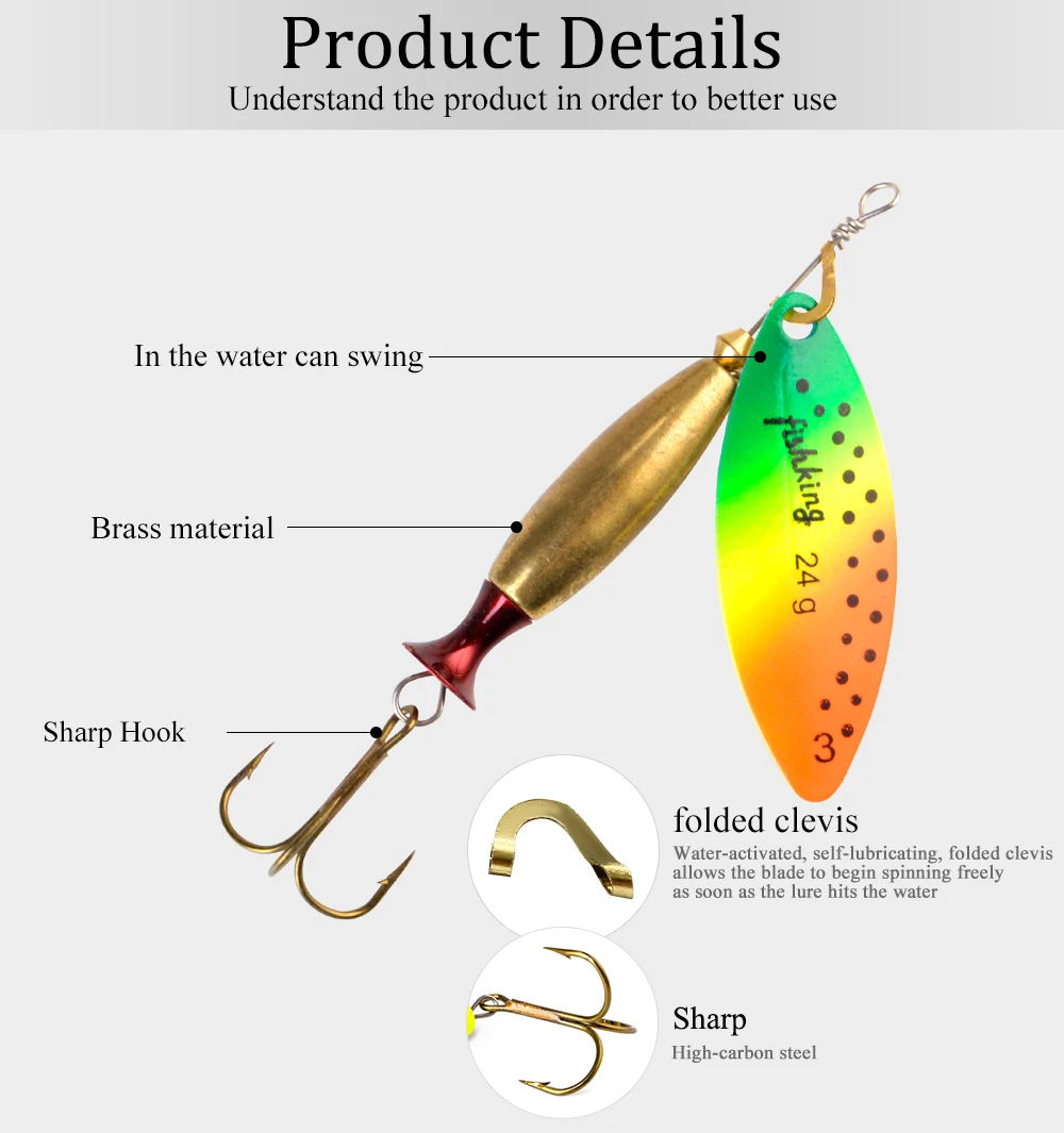 Искусственная ивовая приманка-Спиннер FISH KING, жесткая металлическая рыболовная приманка с тройным крючком, длинная литая приманка для щуки, 1 шт., 18 г, 24 г