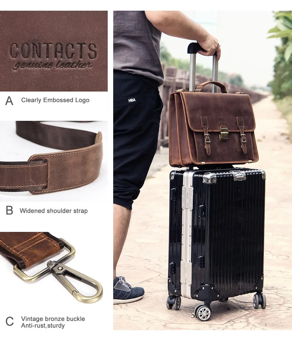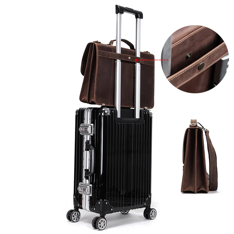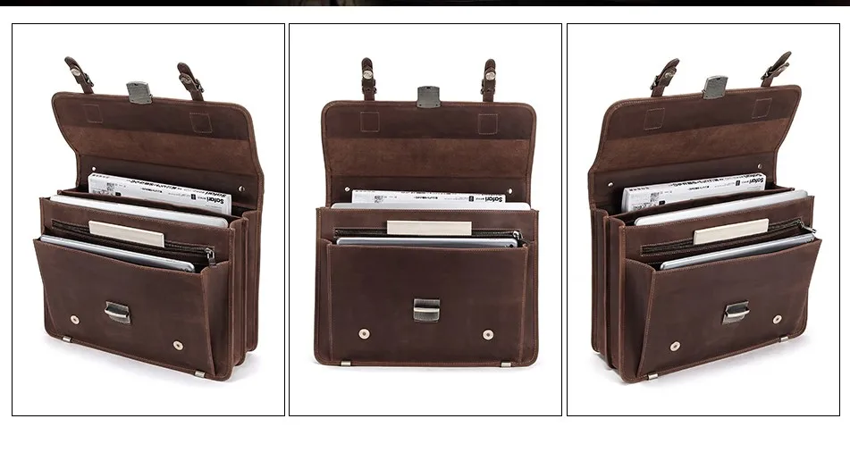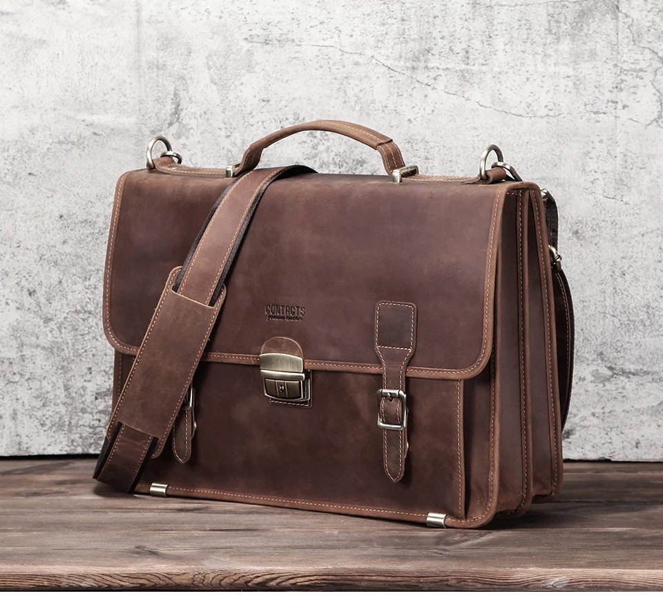 Кожаный мужской портфель Crazy Horse, Вместительная деловая сумка для ноутбука 14 дюймов