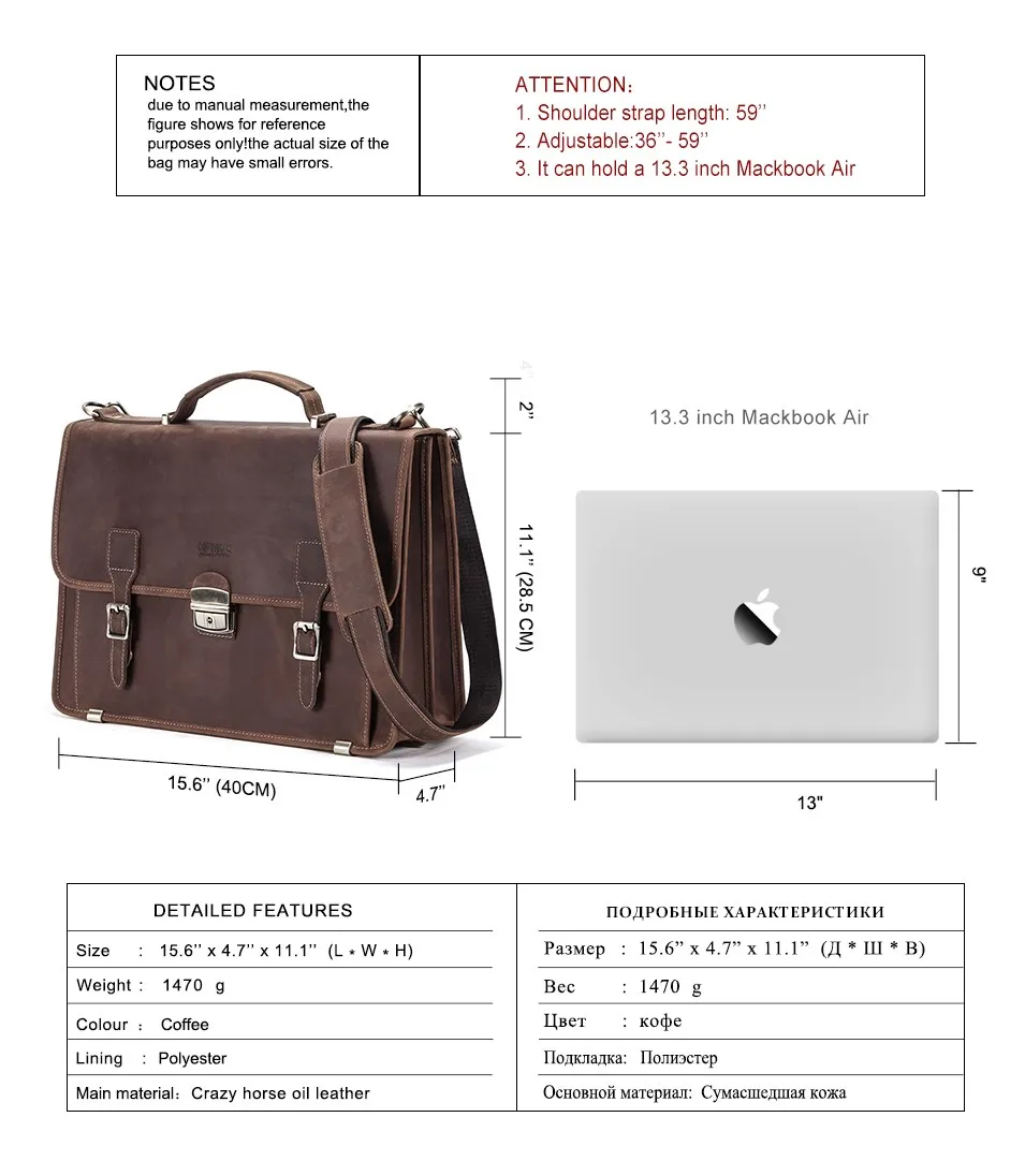Материал: толстая кожа Crazy Horse с натуральной лицевой поверхностью Номер модели: HX-001 Цвет: коричневый Размеры/размер: Ширина: 42 см/ Высокий (высота): 28,5 см Толщина: 10 см/ Вес: 1,47 кг Стиль: тоут, сумка через плечо Использование для: Портфель Сумка для ноутбука ** Мы предоставляем 100% гарантию удовлетворенности. Мы хотим, чтобы вы были счастливы и комфортны с покупкой! *** Пожалуйста, не стесняйтесь обращаться ко мне по любым вопросам, которые у вас могут возникнуть! Мы быстро ответим на Ваше письмо! Способ доставки Мы отправим стандартную доставку (авиапочтой),DHL,EMS или другой способ доставки, если вам нравится Стоимость доставки Общая стоимость доставки и обработки, как показано на странице в рамке «стоимость доставки» Расчетное время доставки Все наши товары будут отправлены вам после того, как мы получим ваш платеж. Для EMS, в зависимости от страны, доставка к вам обычно занимает 5-9 рабочих дней. Для DHL, в зависимости от страны, доставка к вам обычно занимает 3-5 рабочих дней. Доставка авиапочтой Почта Китая зависит от страны, обычно Доставка занимает 9-24 рабочих дня. Политика Возврата Ваше удовлетворение очень важно. Если вы не удовлетворены товарами, просто отправьте их обратно в течение одной недели с момента получения, вы получите возврат средств (не включая стоимость обратной доставки). Если у вас есть какие-либо проблемы с вашей покупкой, пожалуйста, дайте мне знать немедленно и дайте мне шанс решить ее, чтобы вы были довольны.