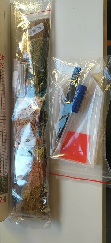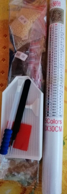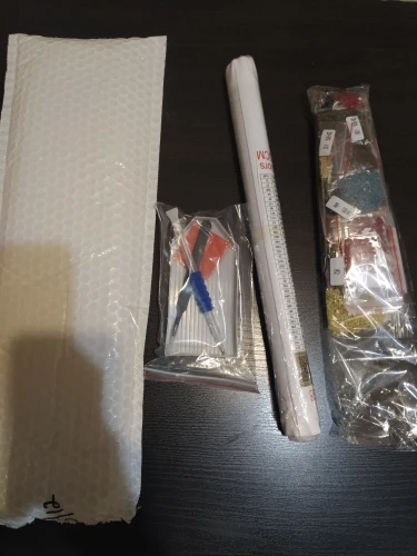 Холст прибыл хорошо упакованным в неповрежденную пузырчатую сумку. Холст обернут вокруг пенопластовой трубки и ламинирован. Бриллианты находятся в небольших отдельных пакетах с избытком, набор для установки является полным и идеальным. Продавец рекомендует, потому что Доставка за 10 дней