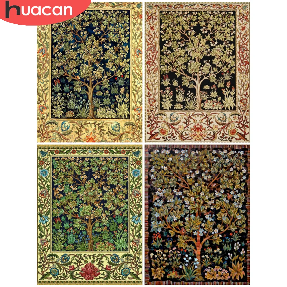 Алмазная вышивка HUACAN, картина с квадратнымикруглыми стразами, мозаика по дереву, пейзаж, вышивка крестиком, картина для домашнего искусства