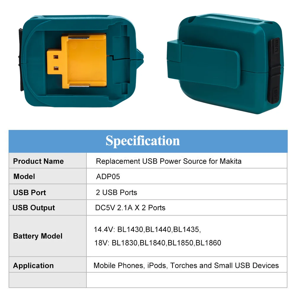 1 * USB источник питания для Makita 14,4 V 18V литиевая батарея (без батареи)