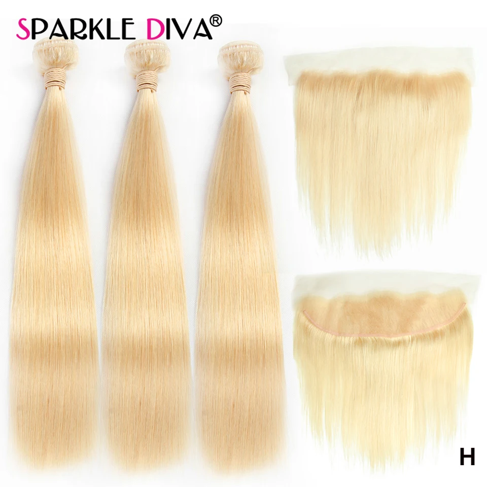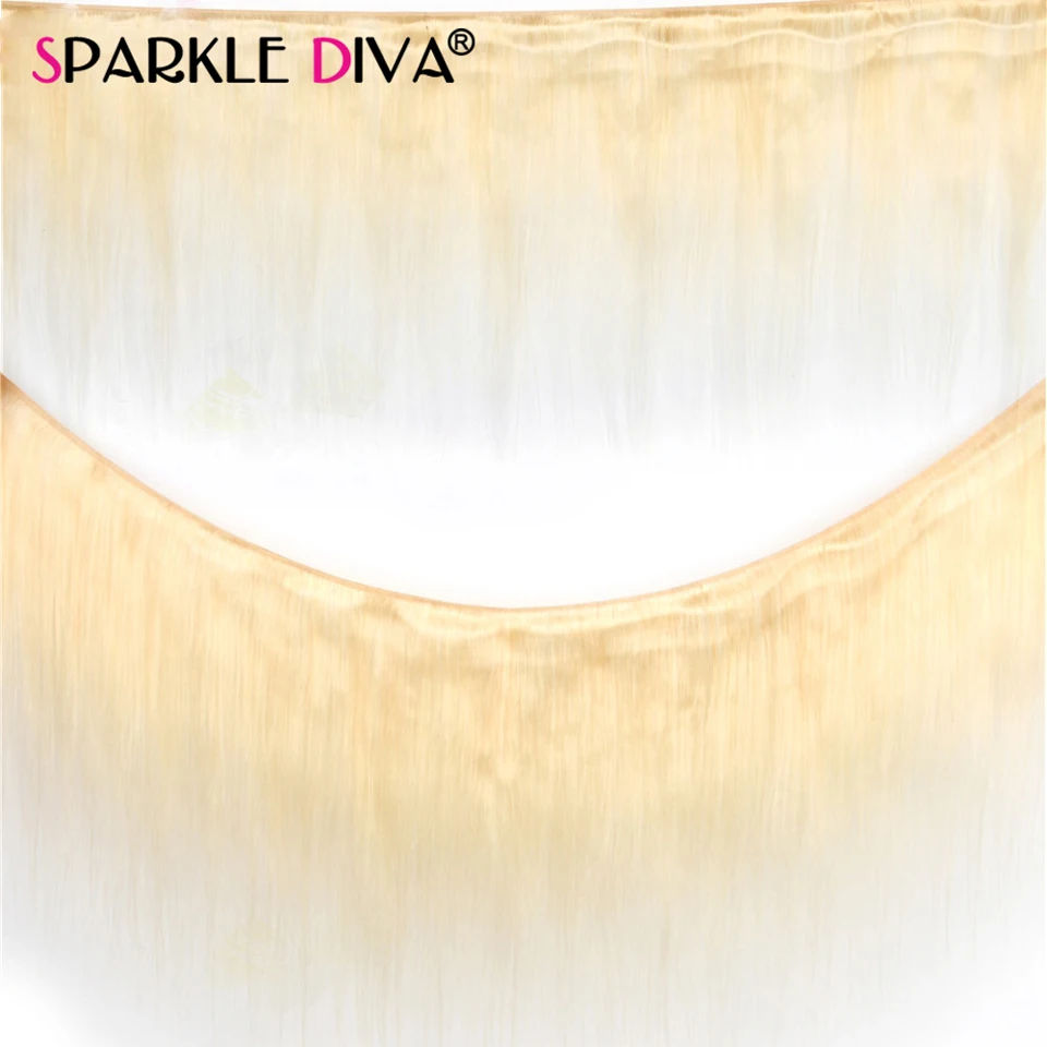 613 светлые прямые бразильские волосы, волнистые, 34 пряди, с фронтальными волосами Реми и кружевной фронтальной
