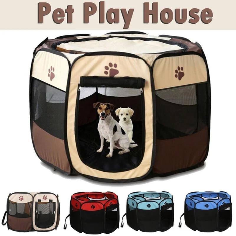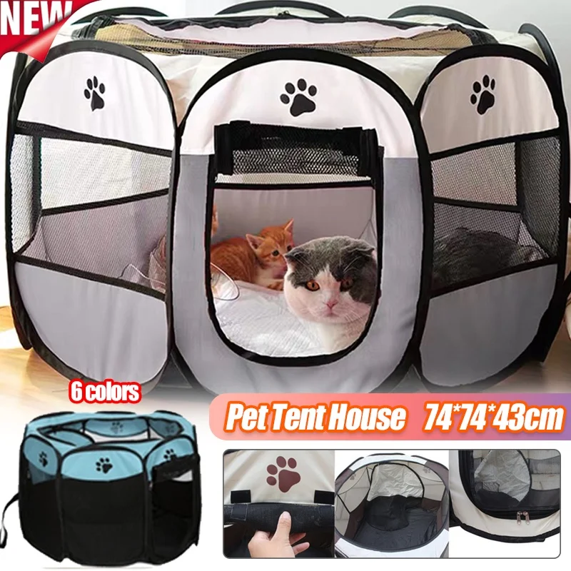 Складная палатка для домашних животных, игровой домик, из дышащего материала, восьмиугольная клетка, съемный переносчик для собак