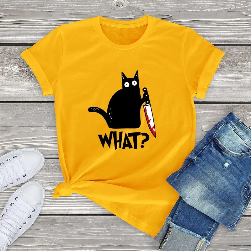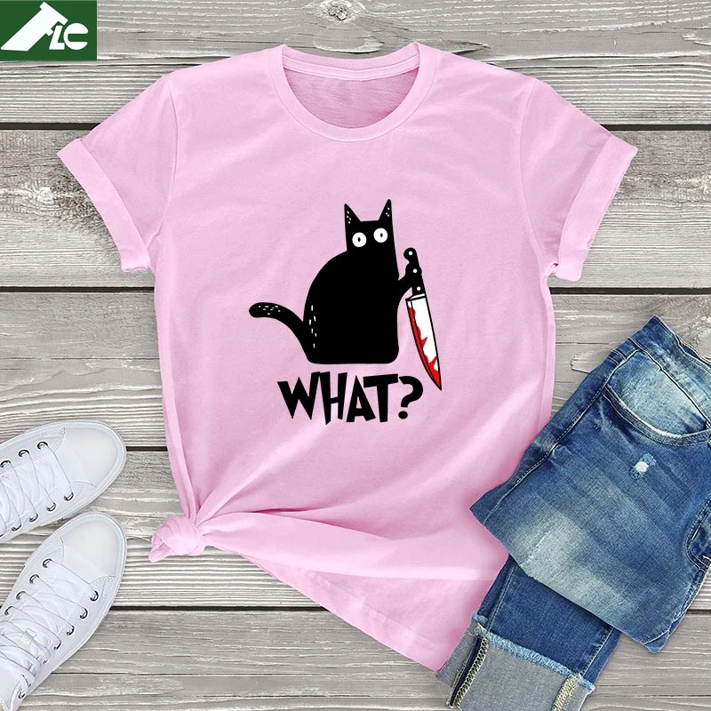 Футболка унисекс из 100 хлопка с рисунком кота, футболка с принтом в виде убийцы кота с ножом, забавные подарки, kawaii, Топы harajuku, женские футболки, мужская уличная одежда для женщин и девочек 90s, летняя Высококачественная футболка большого размера xs-xxxxl