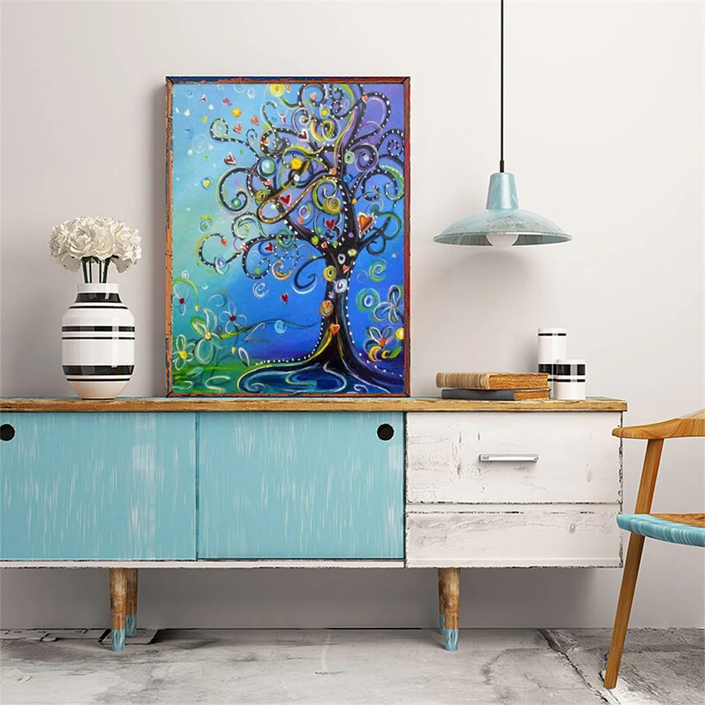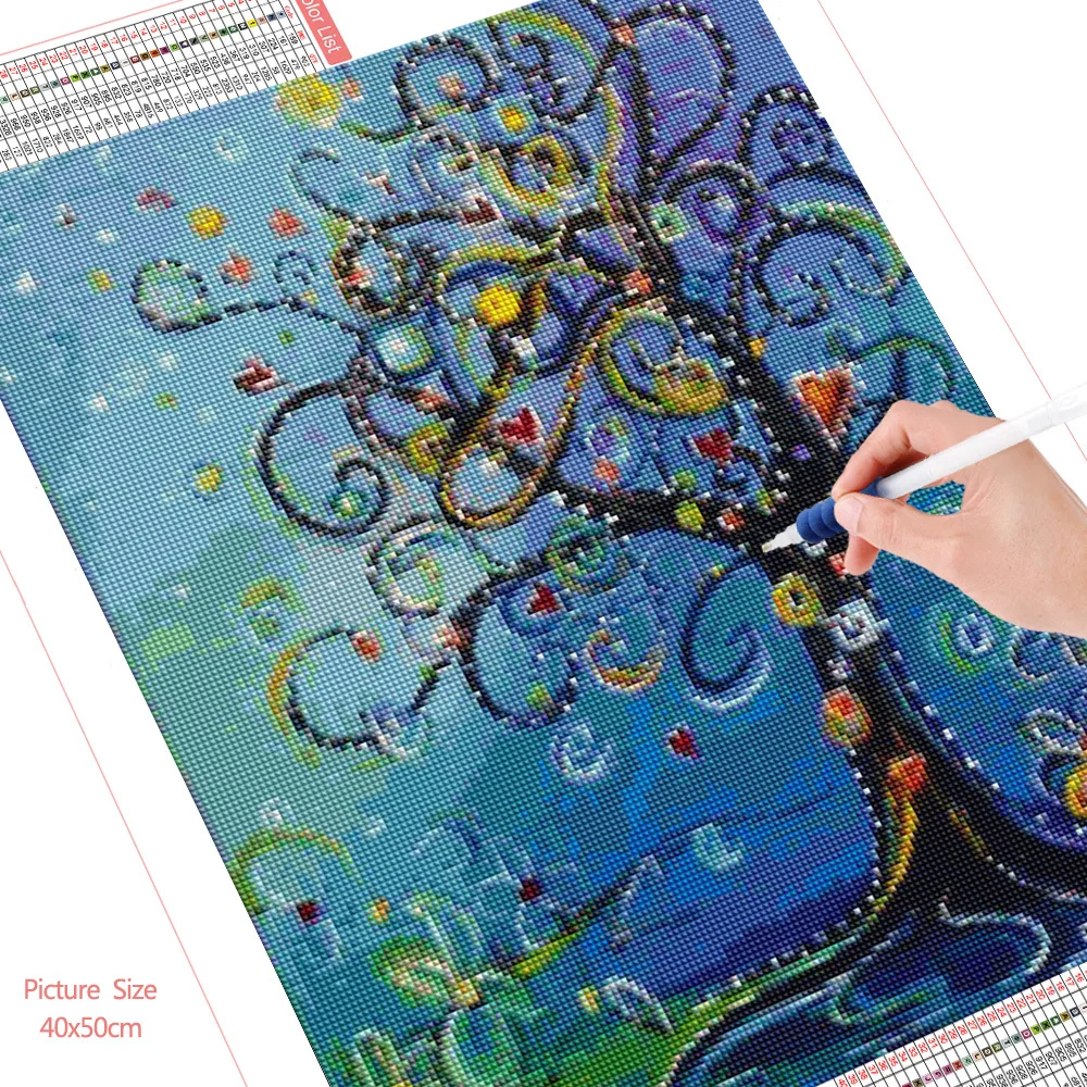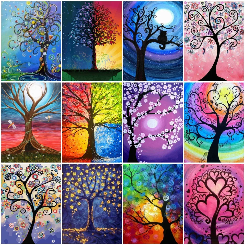 HUACAN алмазов картина наборы деревьев камни в форме ромбакруглый Алмазная вышивка пейзаж мозаика цветы для настенного декора