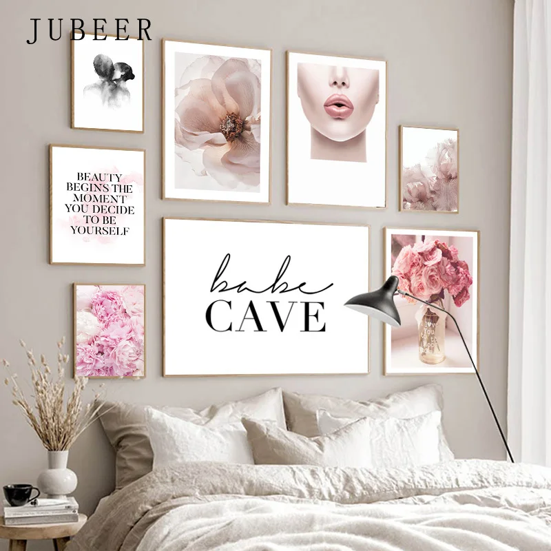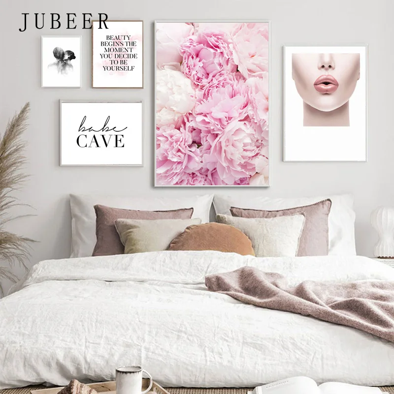Плакаты и принты в скандинавском стиле с розовыми цветами, модные принты на холсте, вдохновляющие цитаты, украшение для гостиной, домашний декор