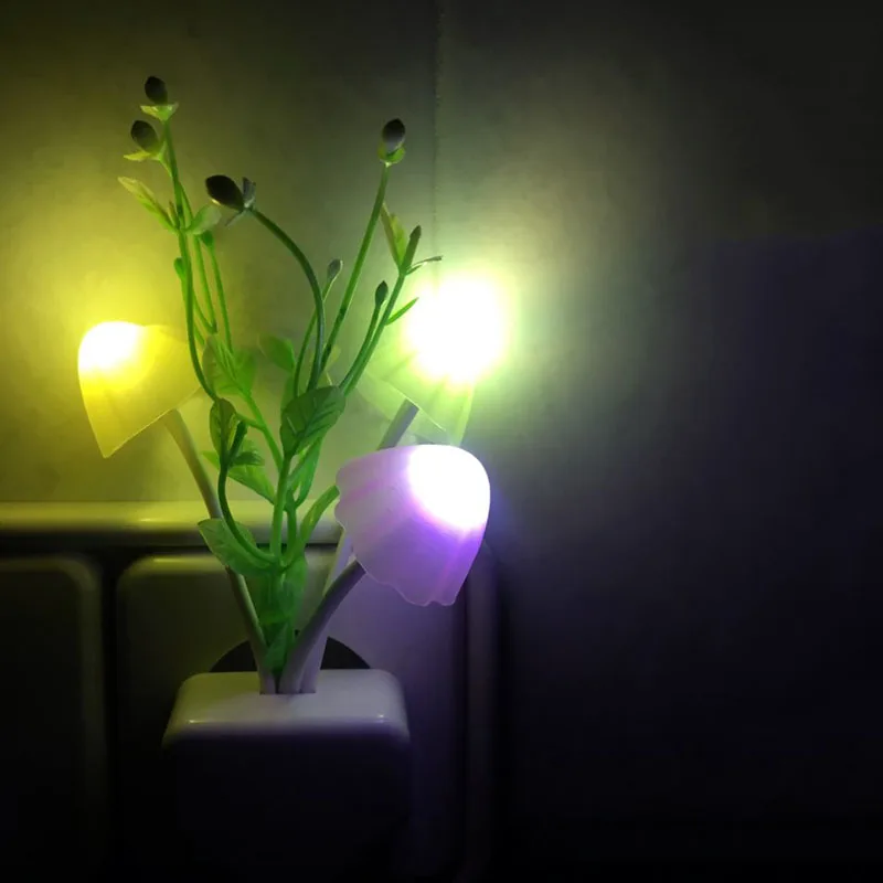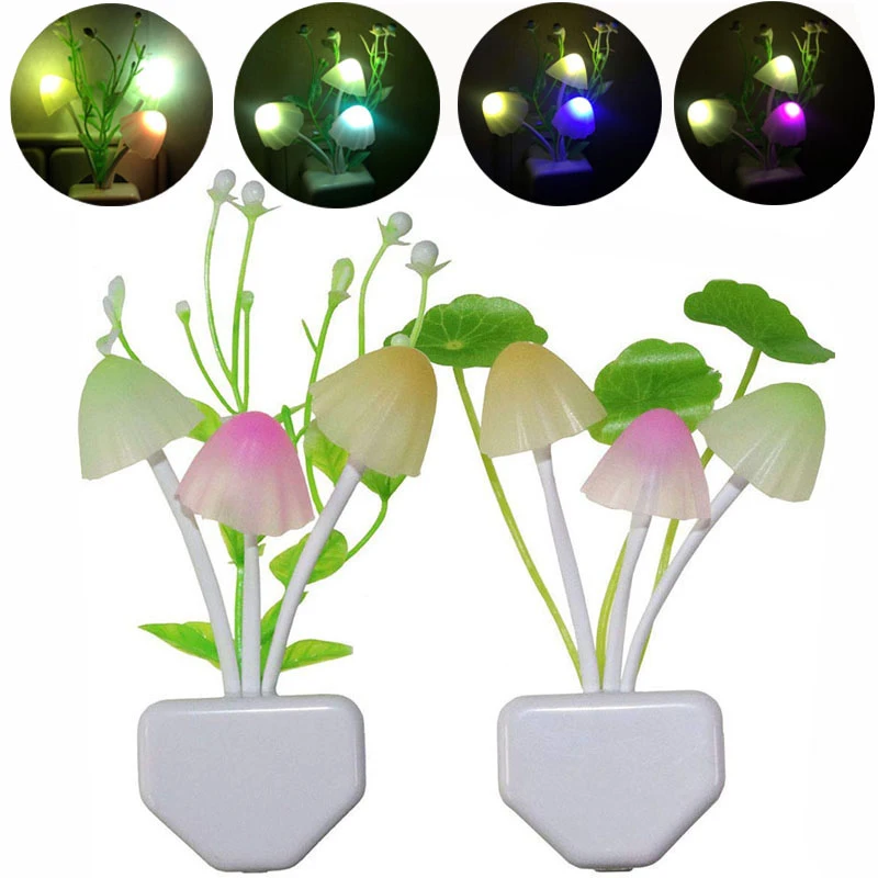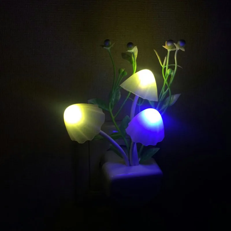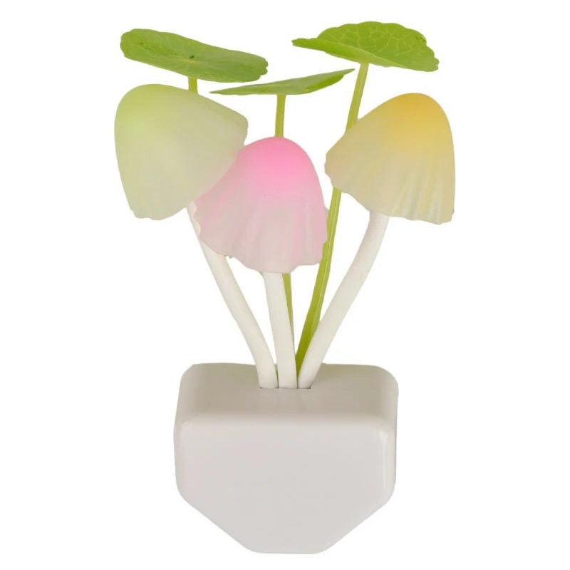 Яркость светодиодный одного ночника в виде грибов: ночсветильник в виде грибов мягкий и теплый, не слишком яркий и не слишком тусклый, подарит ощущение комфорта. Эта лампа больше подходит для детской комнаты. Автоматический переключатель: Встроенный чувствительный светильник ности станет более удобным. Ночсветильник включается в сумерках и автоматически выключается на рассвете. Чрезвычайно низкое энергопотребление (освещение 12 часов в день, занимает всего 1 кВт/ч в год). Умный датчик улучшит вам жизнь. Изменение цвета: 7 цветов автоматически меняются при включении света (только одна лампочка меняет цвет) Легко наносится: милый и гибкий -- весь светильник меньше ладони, проволоку с грибами и листьями можно согнуть до нужного места. Готовьтесь к любому месту, где вам нужен мягсветильник в ночное время, например, к детским комнатам, детской, прихожей, спальне, ночсветильник в ванной, кухне, гостиной, коридору, декоративсветильник, лестница, прихожая и т. д.