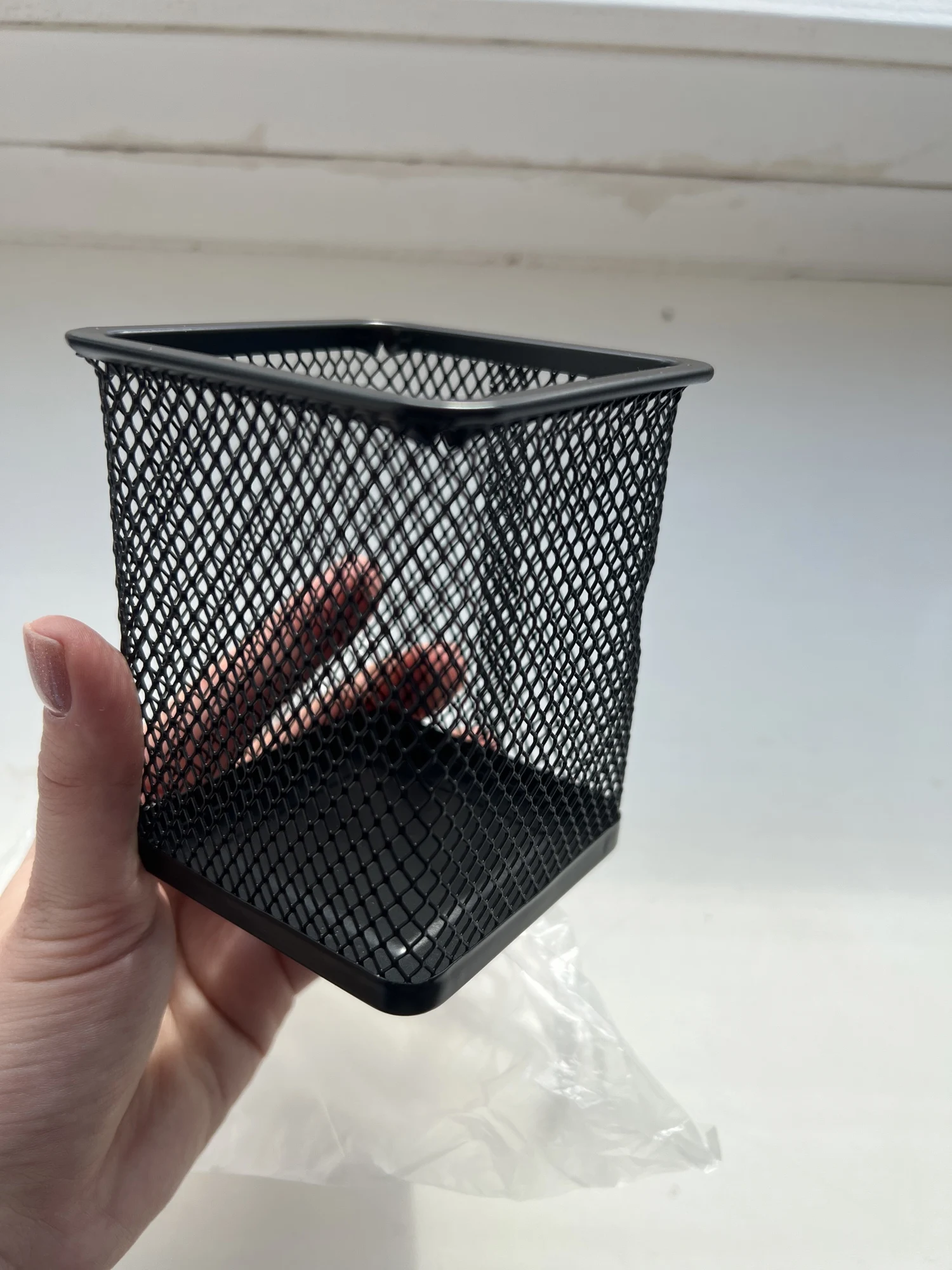 Товар пришёл в мягкой упаковке. Неужели непонятно, что такие ажурные вещи нужно отправлять в жёсткой коробке?! Сетка помята. Второй держатель (прямоугольный) был сильно помят и отскочила верхняя кромка. Пытался отремонтировать, потом разозлился и выбросил в окно на дорогу. просто выбросил свои деньги! Знал бы, так лучше бы не заказывал!