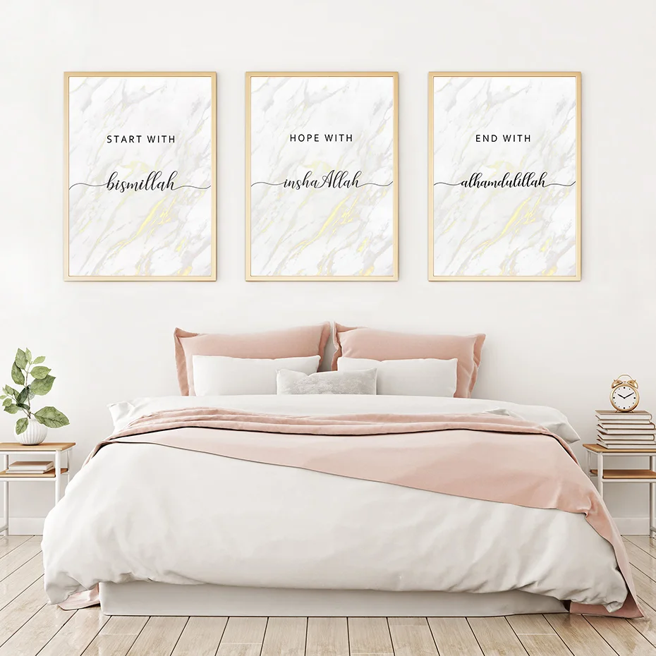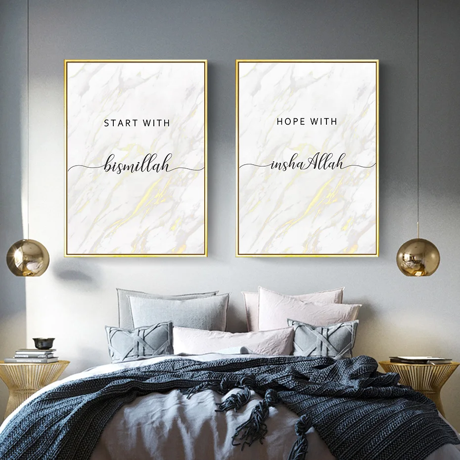 Современный Бисмиллах исламский Золотой Мрамор Гостиная интерьера домашний декор начать с холст картина, печатный плакат Настенные картины