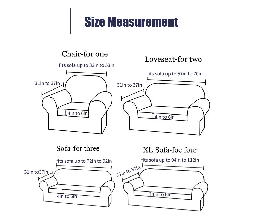 Посылка входит: 1 чехол для дивана-это только чехол для дивана, за исключением чехла для подушки.(Цена за единицу относится только к 1 чехлу для дивана, за исключением наволочек или других аксессуаров.Если вам нужны наволочки, заказывайте их отдельно.)Рекомендации по размеру: Пожалуйста, измерьте, включает ли ваш диван подлокотники, а затем выберите размер.Если вы не измеряете диван с подлокотниками, чехол будет меньше дивана.Для 1 человека длина дивана должна быть в пределах 90-140 см.Для 2 человек длина дивана должна быть от 145 до 185 см.Для 3-х сидений длина дивана должна быть 190-230 см. Длина 4-местного дивана должна быть 235-300 см.Для L-образных, угловых или двухкомпонентных модульных диванов необходимо заказать комплект из 2 предметов.Размер чехла будет зависеть от длины линий AA, BB и CC.Например: если AA = 200 см и BB = 160 см,Вам следует приобрести чехол на 1 диван на три места и чехол на 1 диван на два места.Наши чехлы для диванов подходят для диванов с зазором между сиденьем со спинкой и подлокотником.(Перед покупкой убедитесь, что на вашем диване есть большой зазор, чтобы полоски из пенопласта выскользнули.Наши чехлы на диван не подходят для диванов с небольшими зазорами.)Назначение: Этот базовый чехол для дивана может защитить и защитить мебель от пятен, износа и повреждений, чтобы предотвратить повреждения.Он идеально подходит для семей с домашними животными или людей, которые ищут доступные решения для защиты мебели.Вы даже можете купить диван разных цветов и украсить его в соответствии с сезоном и настроением.Примечания:1. Кнопка размера: 2 Наволочки, 2 Наволочки, не Чехлы для дивана.2. Допускается погрешность в 1-3 измерения вручную. Разные страны/регионы имеют разные размеры, пожалуйста, проверьте перед покупкой.3. Вы не можете выбрать одну из цветных кнопок, пожалуйста, свяжитесь с нами.Предупреждение: Избегайте использования отбеливателя для очистки корпуса и используйте одежду похожего цвета.