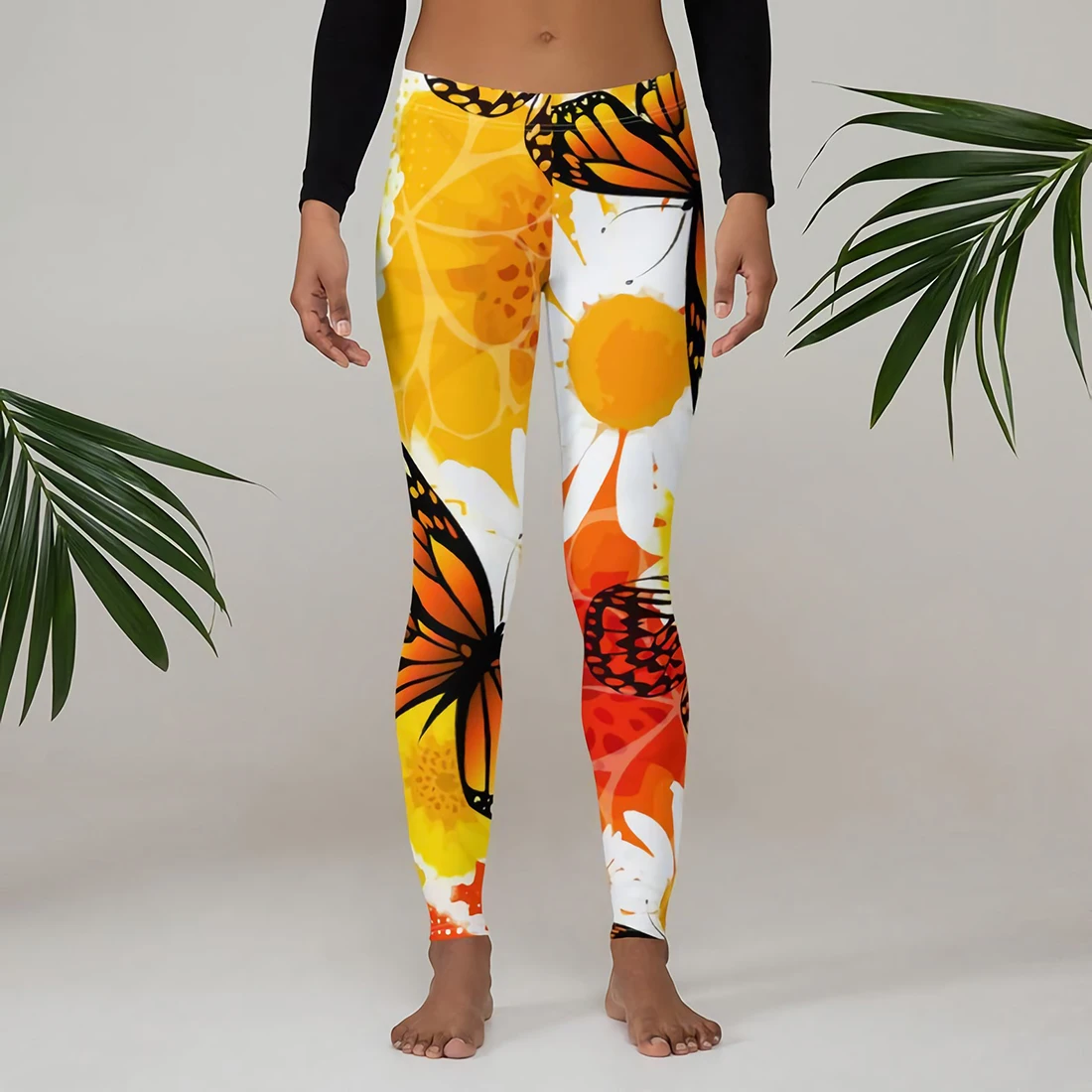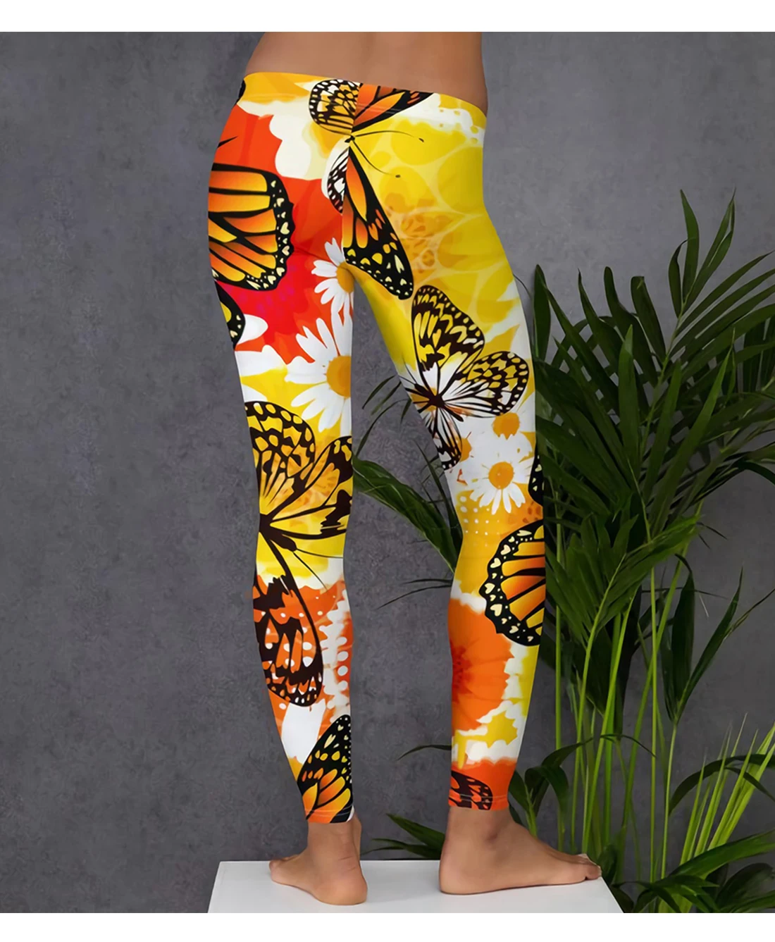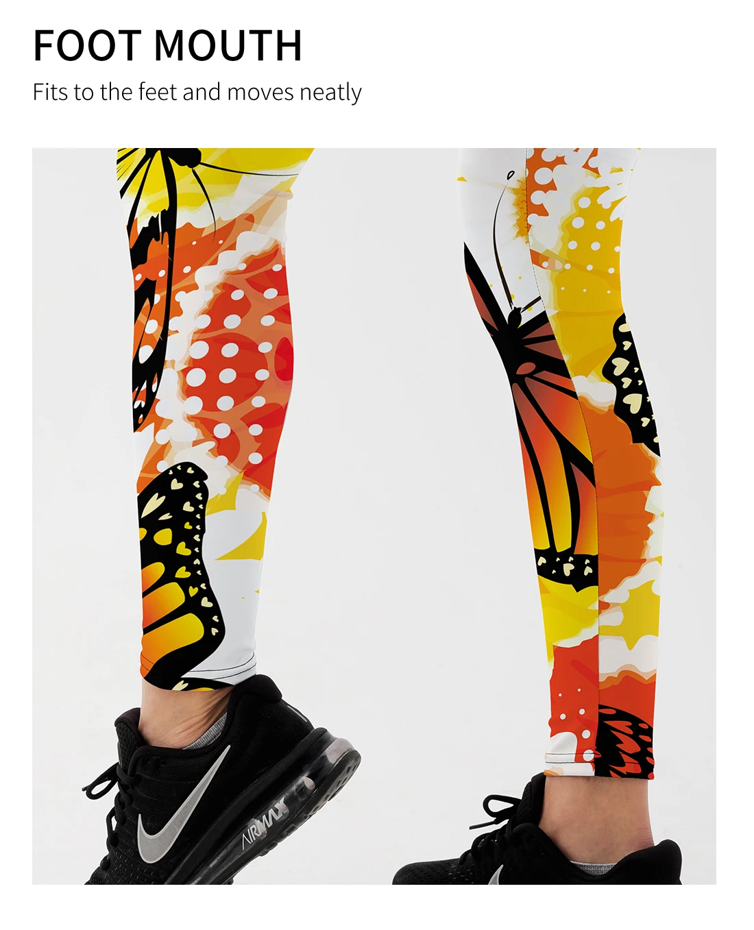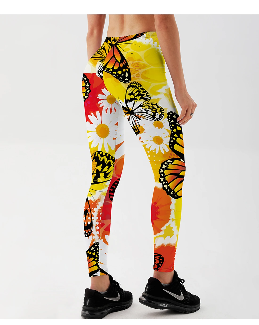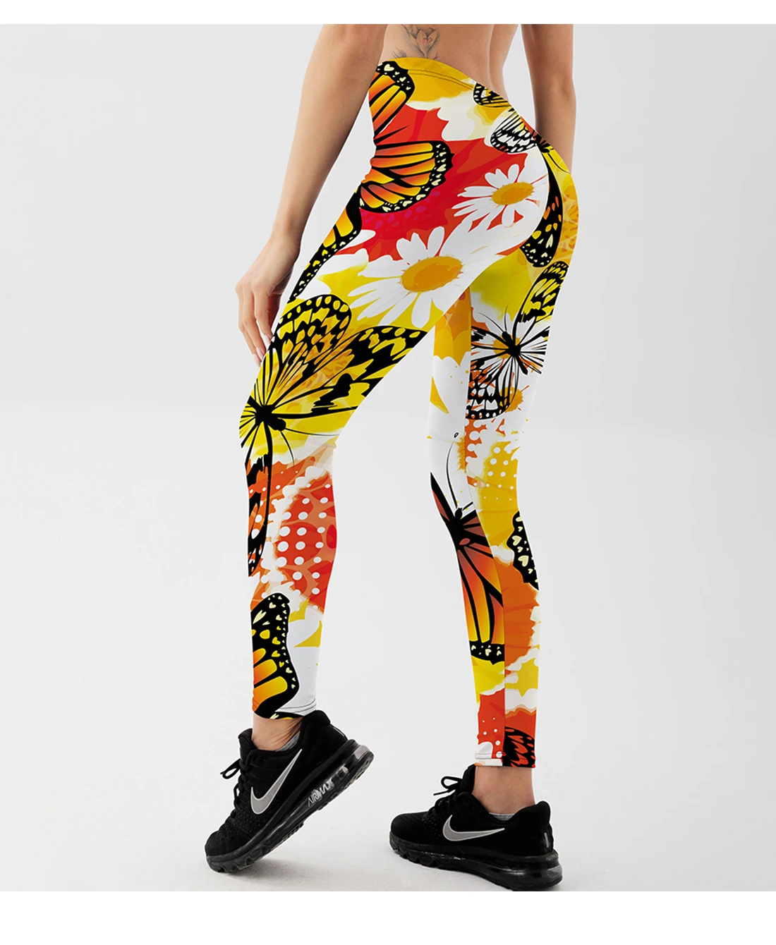 Женские легинсы с желтыми бабочками и цветочным принтом, повседневные длинные легинсы для фитнеса и тренировок