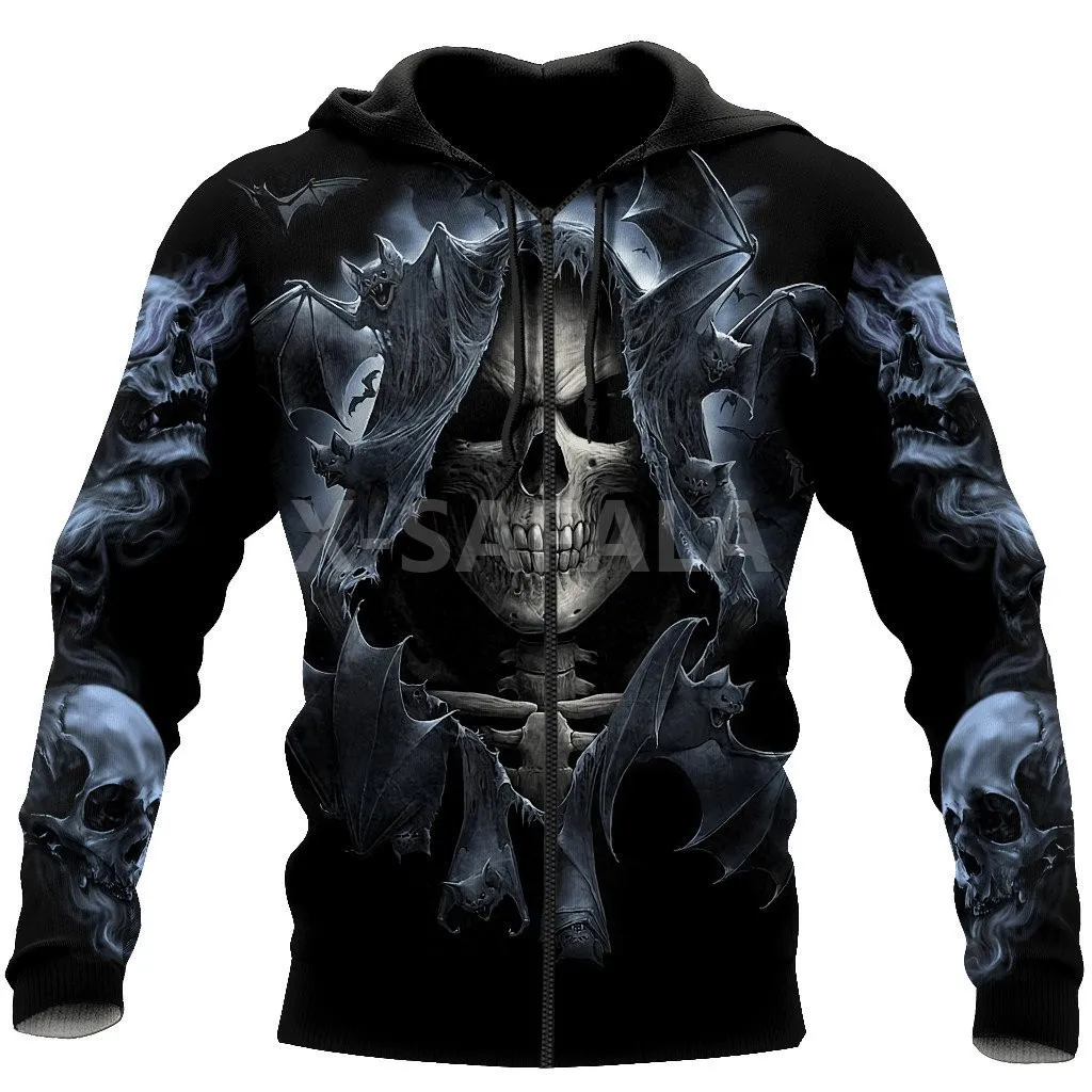 Толстовка унисекс с 3D-принтом головы черепа, на молнии