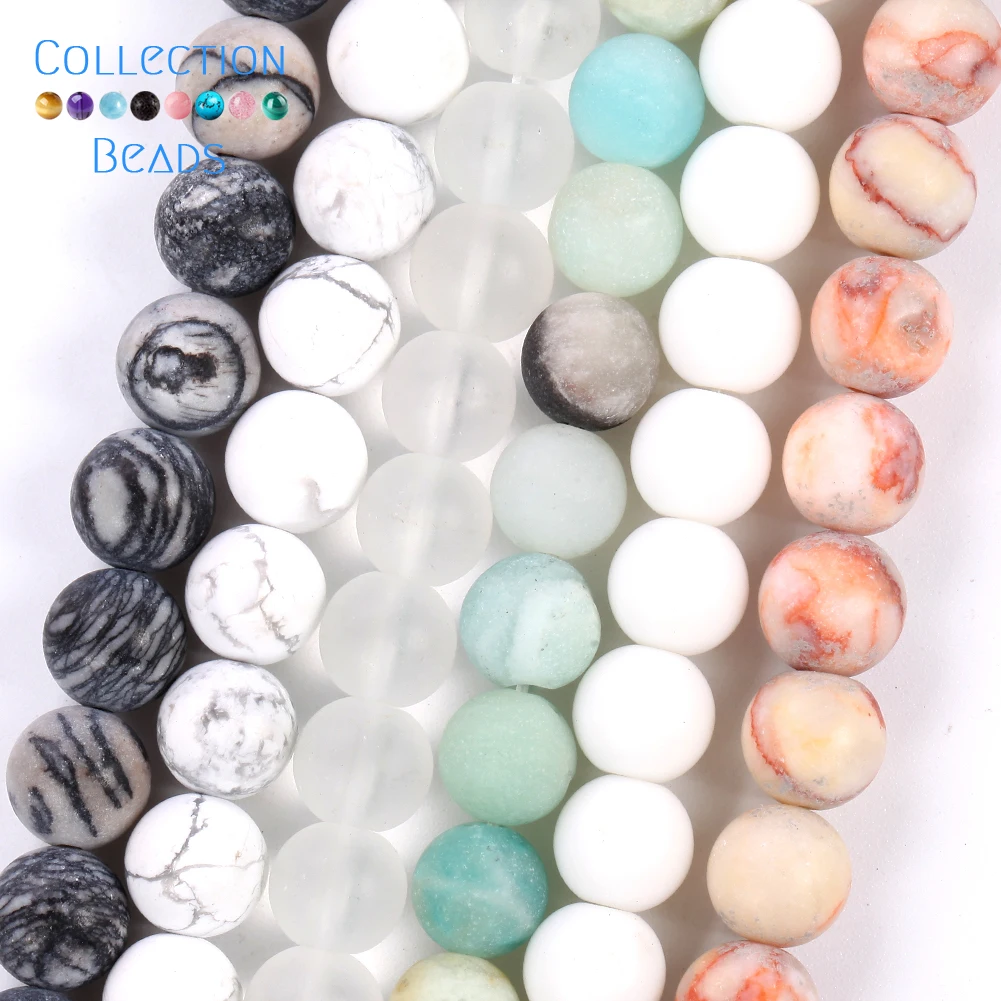 Натуральный Матовый Камень Кристалл кварц Амазонит Бирюзовый говлит веб яшмы вокруг бисера для самостоятельного изготовления ювелирных изделий Браслеты