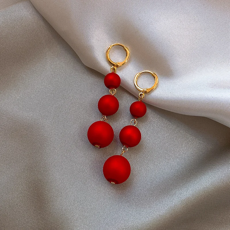 Женские серьги с красным жемчугом, праздничные длинные серьги с подвеской из искусственного жемчуга, 2021