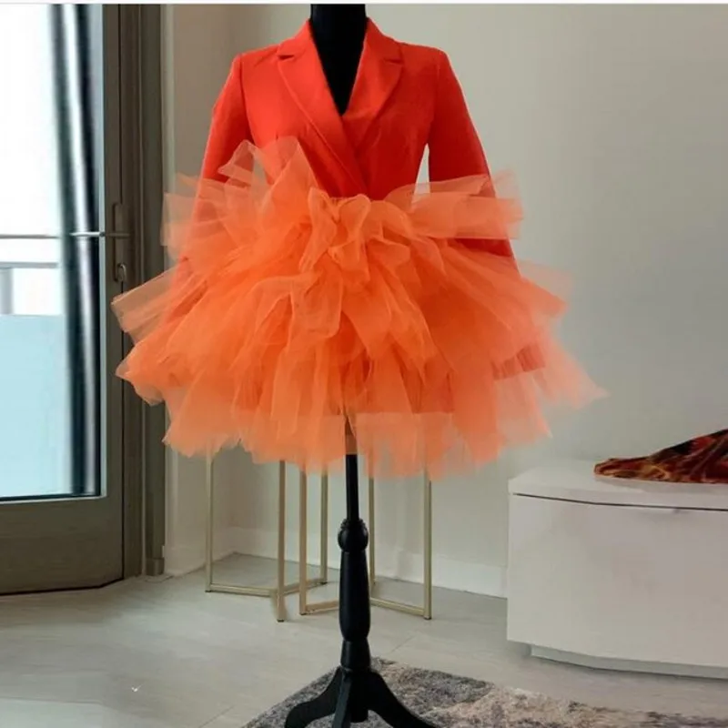 Женская юбка-пачка из фатина, оранжевая короткая юбка с оборками в ...