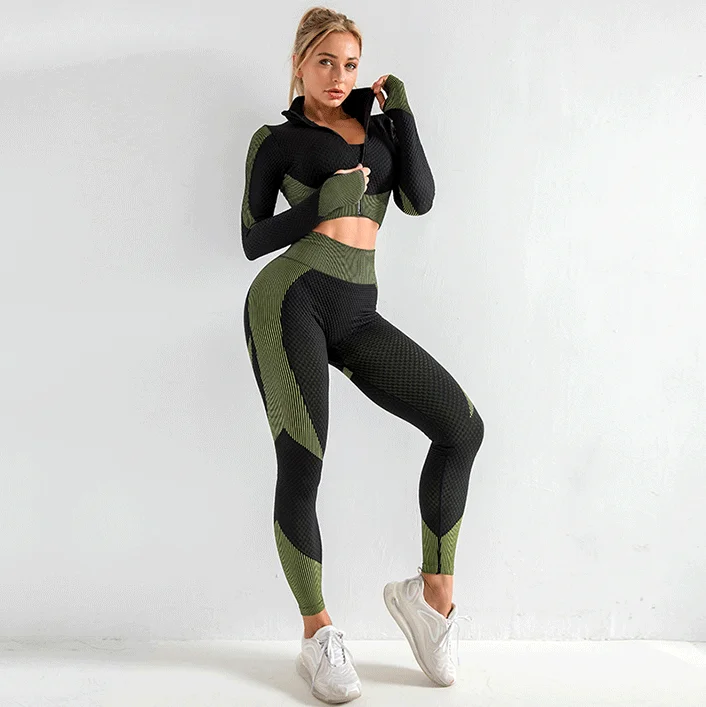 Бесшовный спортивный комплект из 3 предметов, женская одежда для бе...