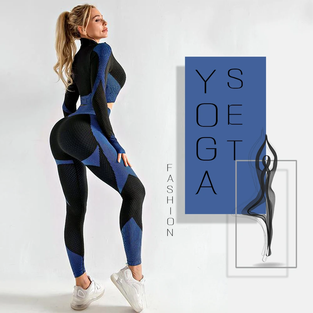 Бесшовный Женский комплект для йоги одежда для занятий спортом для спортивного зала фитнеса укороченный топ с длинным рукавом Леггинсы с высокой талией спортивные костюмы