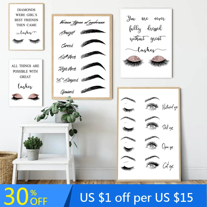 Плакаты и принты макияж для ресниц для наращивания техник руководство магазин Декор стены Картины ресниц абстрактные картины для Красота