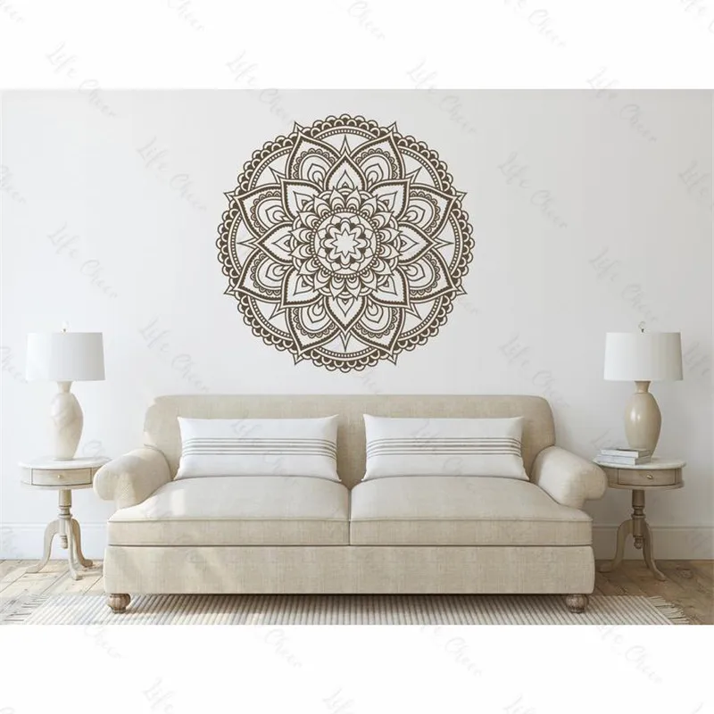Красивая Цветочная мандала, Настенная Наклейка в стиле бохо, художественная Виниловая наклейка для йоги, обои для гостиной, спальни, дизайнерское настенное украшение