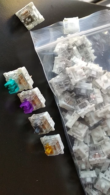 Great seller. Items well wrapped in bubble wrap. Very happy with silent grays, nice tactile bump close to the top (little pre-travel) and a fair bit more silent than a linear outemu when bottoming out but especially when popping back up while at the same time not feeling mushy to me. b v bbaSeller also sent some other different types to try out, so quick impressions: dust proof teal - clicky, slightly lighter than original teal 80g I had dust proof purple - "tactile" in the same sense that mx browns are tactile, disliked this one, feels like a linear that gets slightly stuck silver - linear, feels slightly lighter than dust proof reds I had gold - clicky, lighter spring makes the pre-travel easier so when the click jacket is about to go down there's a bigger difference in force, to me makes it a more tactile event than teals because of this. All with slightly pre-lubed stems.
