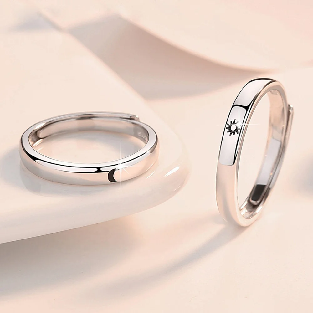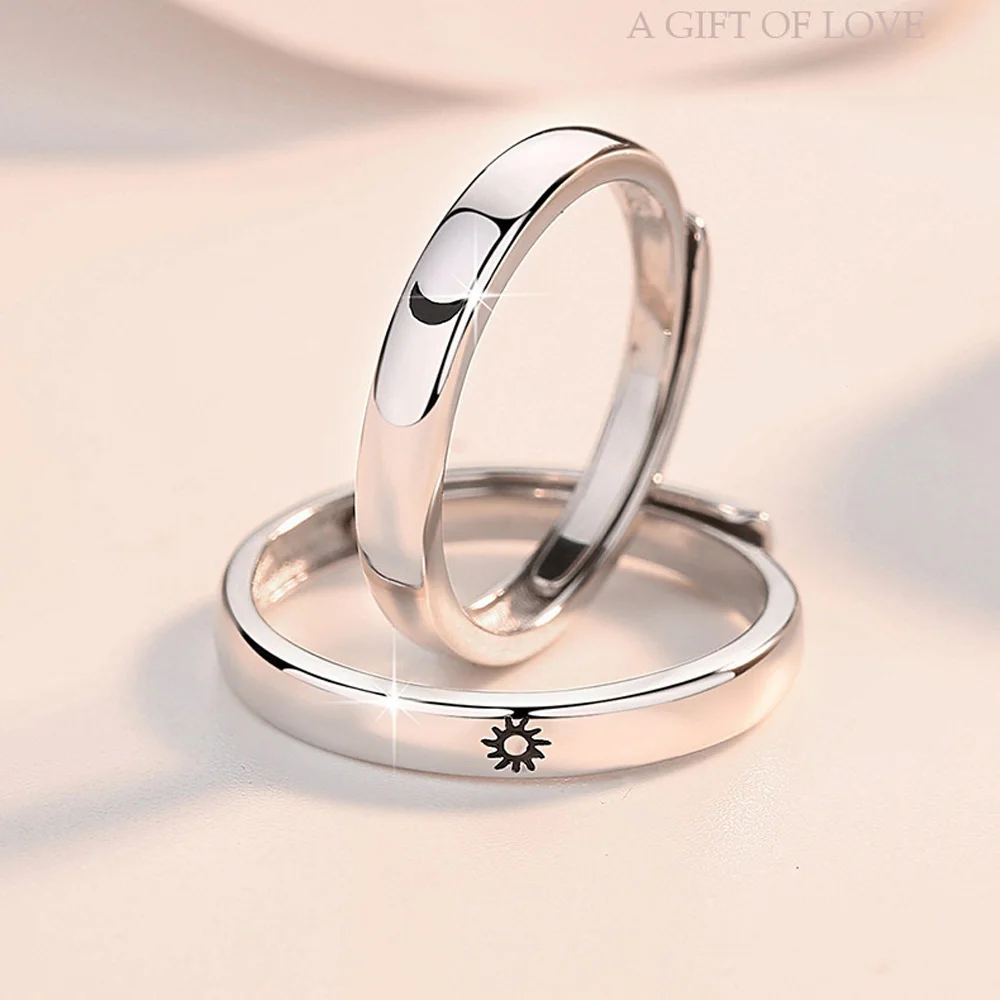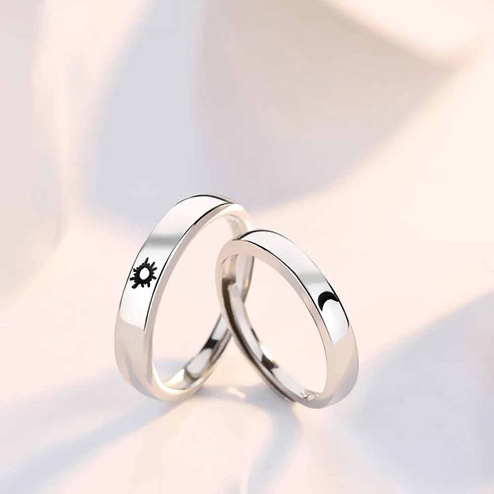 Модное простое Открытое кольцо с солнцем и луной, минималистичное серебряное регулируемое кольцо с солнцем для мужчин и женщин, обручальное ювелирное изделие для пар
