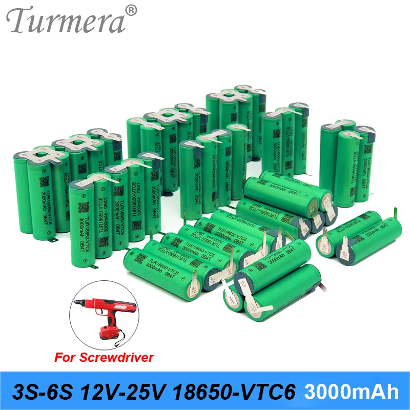 Turmera 18650 VTC6 3000 мАч аккумулятор 3S 4S 5S 6S 12,6 V 16,8 V 18V 25V TUR18650-VTC6 6000mAh 30A для шуруповерта Shura