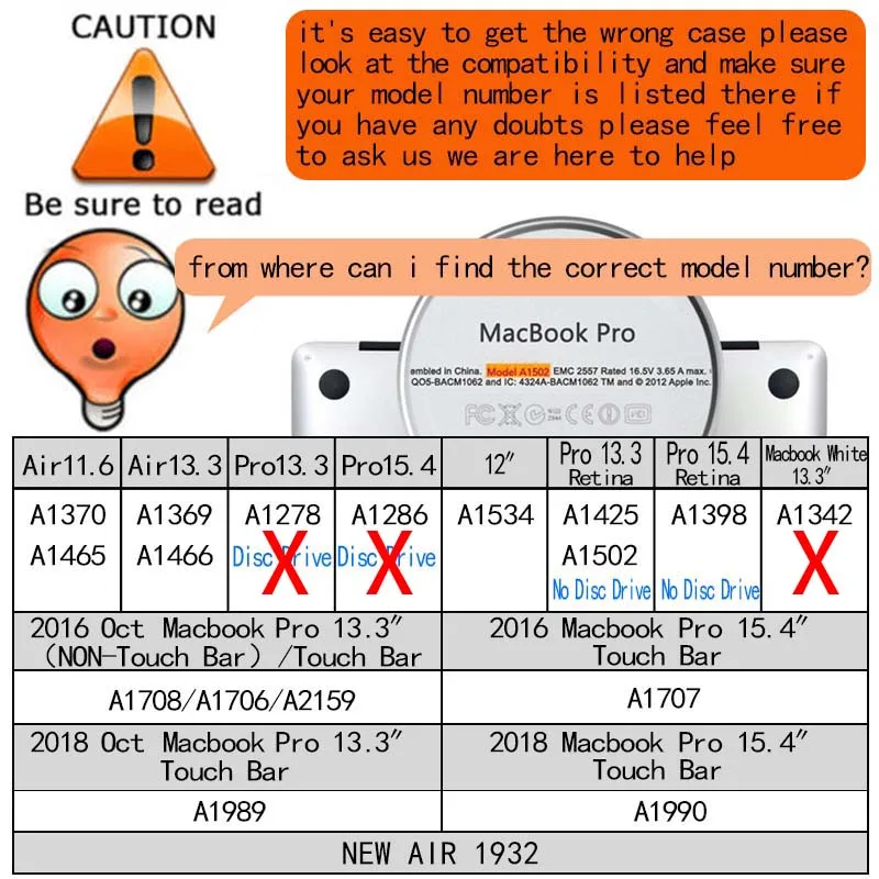 Примечание: Macbook имеет много моделей, пожалуйста, проверьте модель вашего macbook перед покупкой. Вы можете найти номер модели в нижней части вашего macbook.