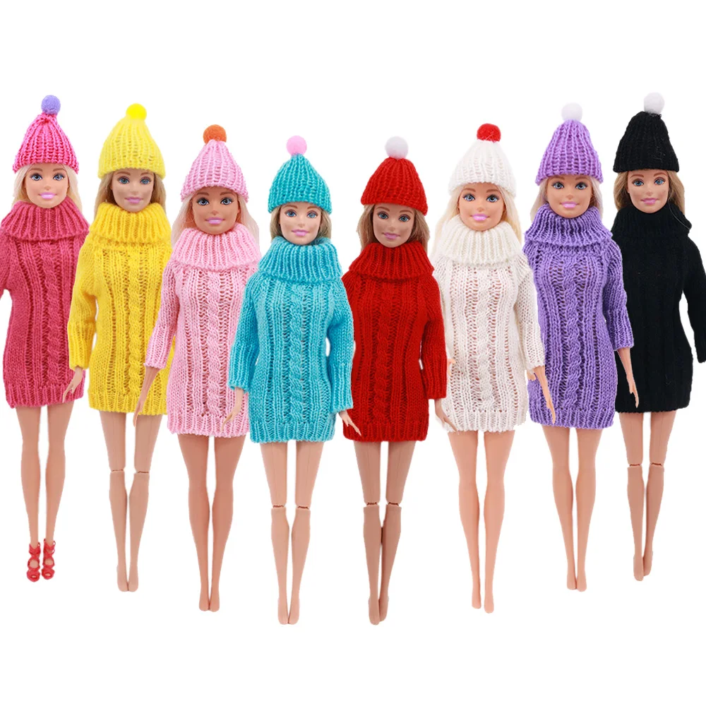2 шт.компл. Бесплатная доставка = 1 свитер + 1 подарок (шапка) кукольная одежда вязаный свитер сплошного цвета для Барби аксессуары для кукол Девочка игрушечный подарок