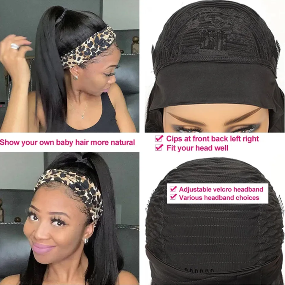 Прямой парик с головной повязкой из натуральных волос Синтетические...