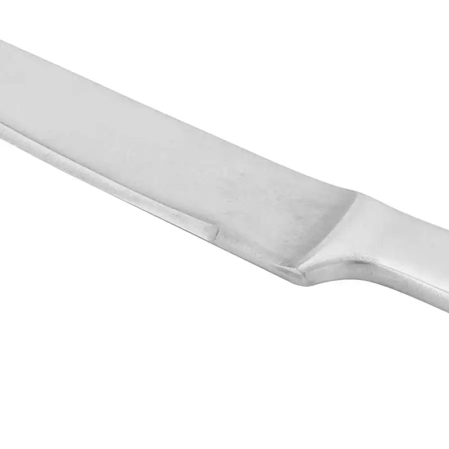 Характеристика:1. Изысканные материалы, отличное качество изготовления и матовая зеркальная обработка.2. Процесс зеркальной полировки, тонкая полировка, такая же блестящая, как зеркало, с четким отражением, более высокая яркость, красивая и модная.3. Толстая стальная пластина, изготовленная из нержавеющей стали, толстый материал, толстый и прочный.4. Удобная ручка, тщательно отполированная, линии, устойчивость к коррозии и истиранию.5. Острое лезвие, умный дизайн, закругленные углы, легко чистить, модный внешний вид.Спецификация: