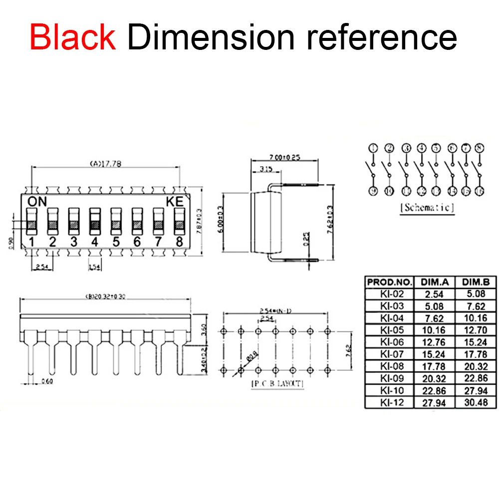 5 шт. KI черно-золотистый 1234568 позиционный переключатель DIP, два ряда шага 2,54 мм, переключатели слайдов, переключатель циферблата