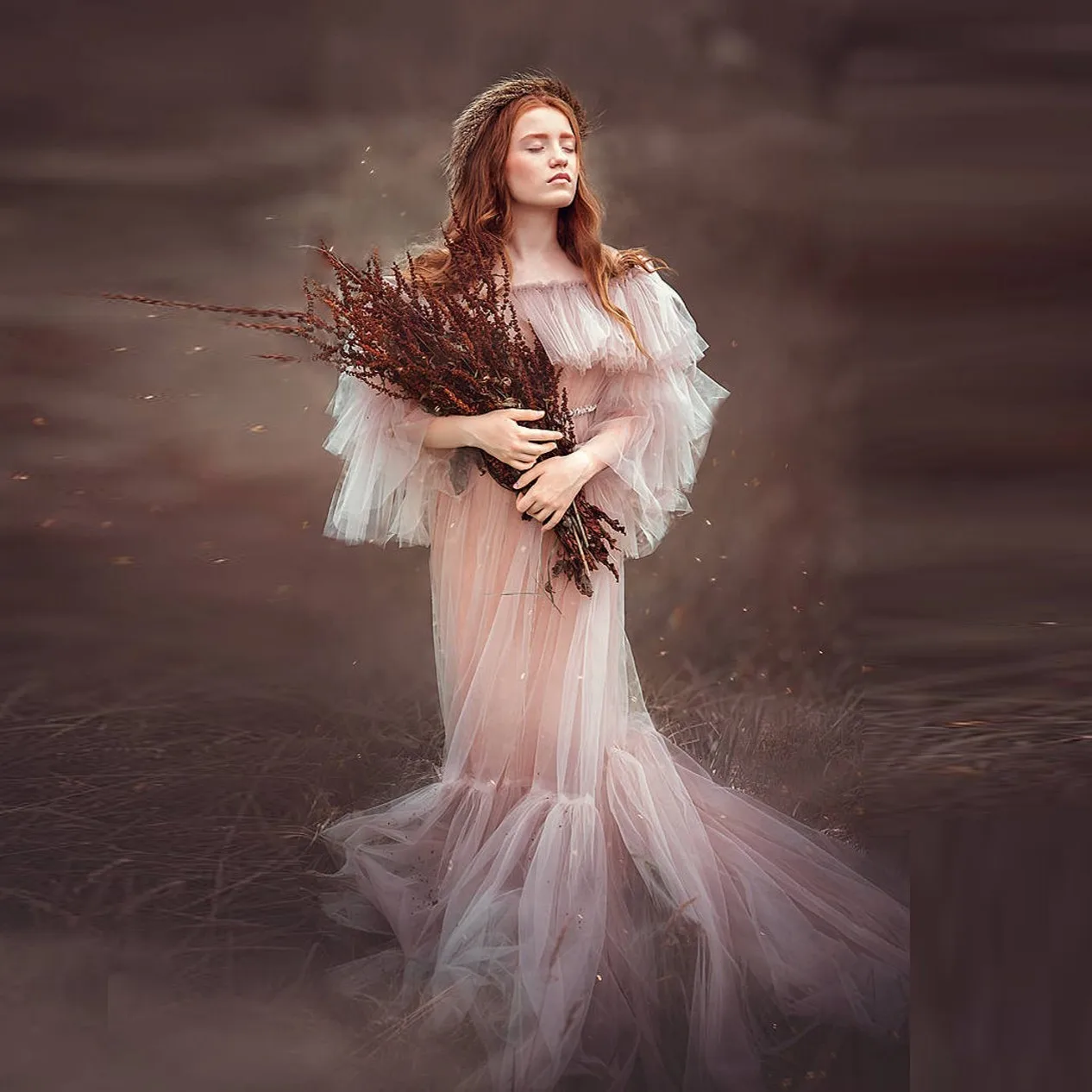 Шикарное платье для фотосъемки для беременных Пышное Тюлевое платье...