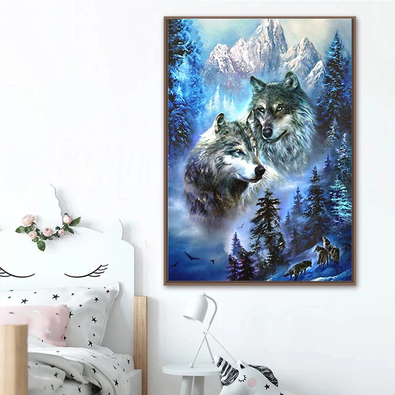Набор для алмазной живописи 5D с полным наполнением квадратными стразами для взрослых, вышивка крестиком, мозаика, алмазная 3D вышивка с волком, украшения для дома в виде животных