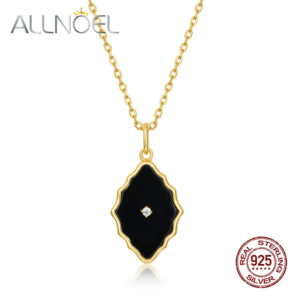 ALLNOEL твердый кулон из стерлингового серебра 925 пробы для женщин, синтетический опал, черный оникс, ожерелье для помолвки, свадебные ювелирные украшения, новый подарок