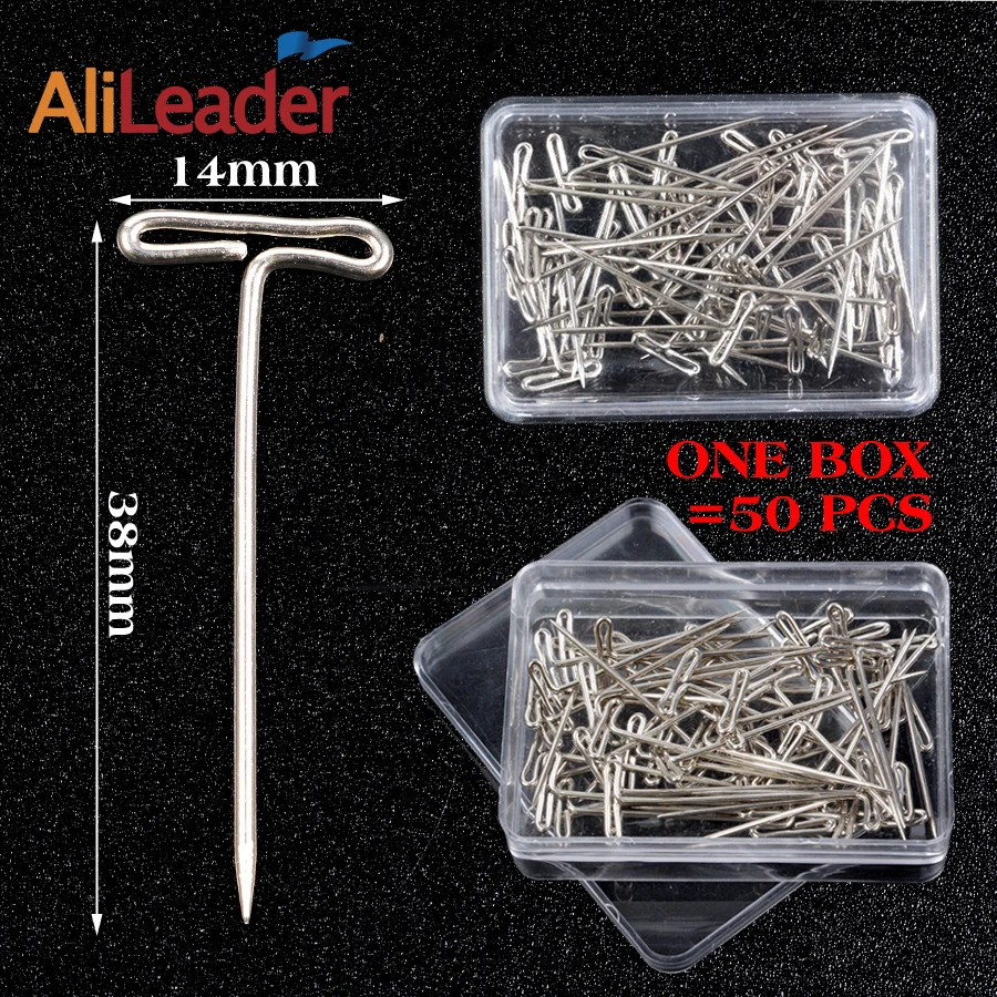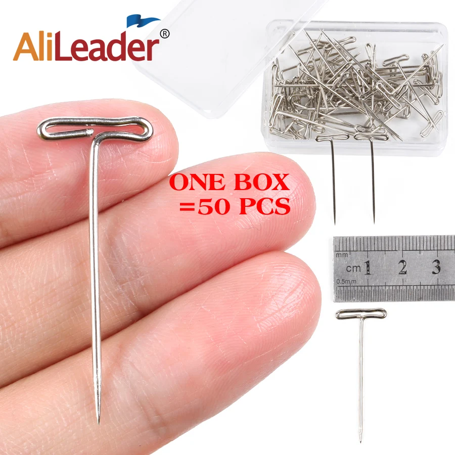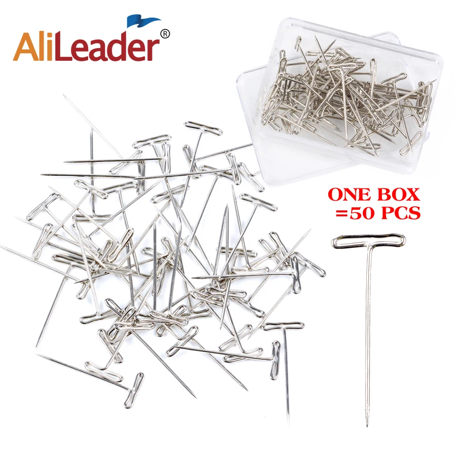 Т-образные булавки Alileader, инструменты для изготовления париков, длинные Т-образные булавки для изготовления париков на поролоне, головке манекена, серебристые Т-образные булавки для париков, 50 шт.кор.