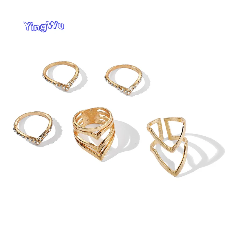 Модные 5 шт.компл. волнистые золотые кольца в комплекте, прозрачные кристаллы, простые Очаровательные золотые металлические кольца из сплава для женщин, аксессуары