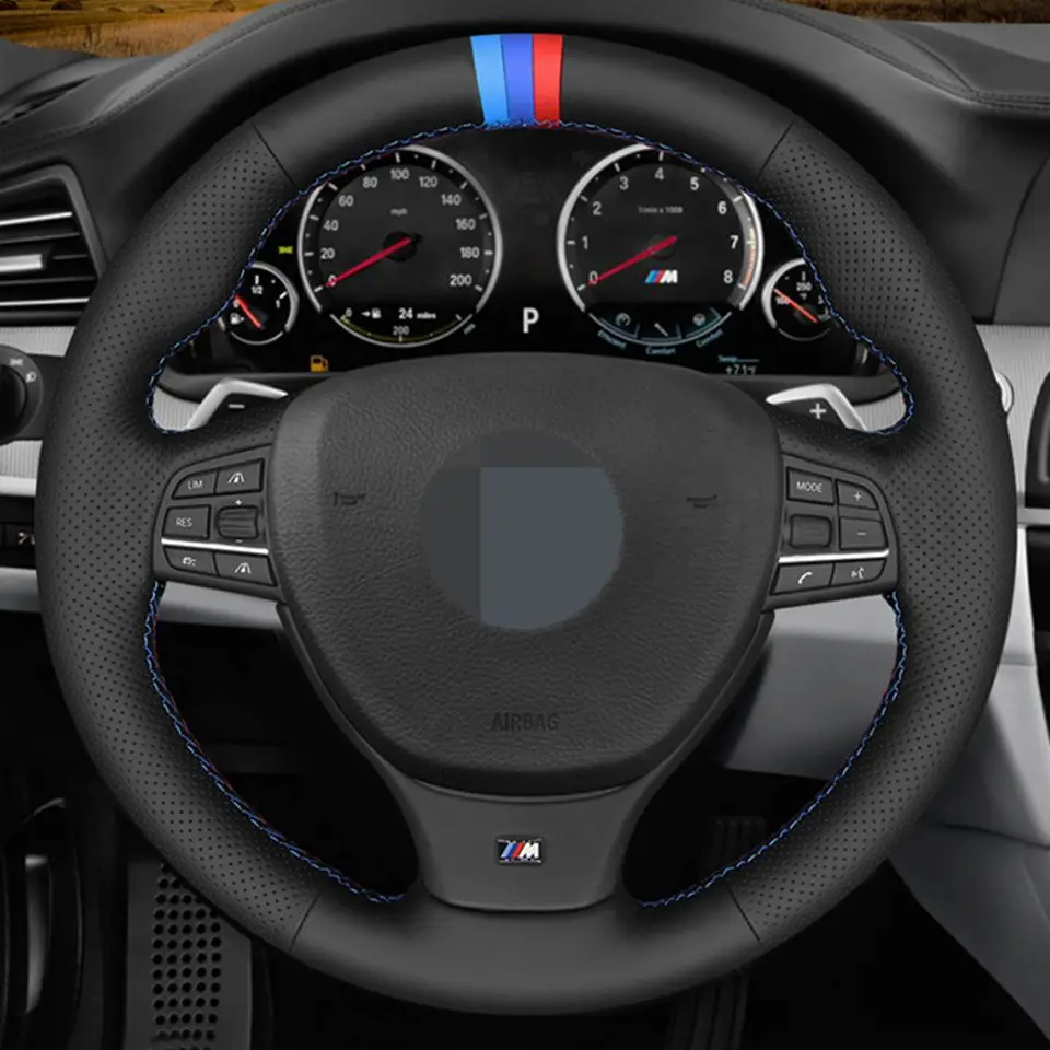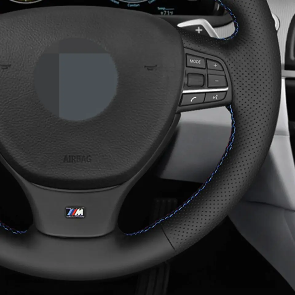 Сшитая вручную черная искусственная кожа для BMW M Sport F10 F11 (универсал) F07 F12 F13 F06 F01 F02 M5 F10, чехол рулевого колеса автомобиля