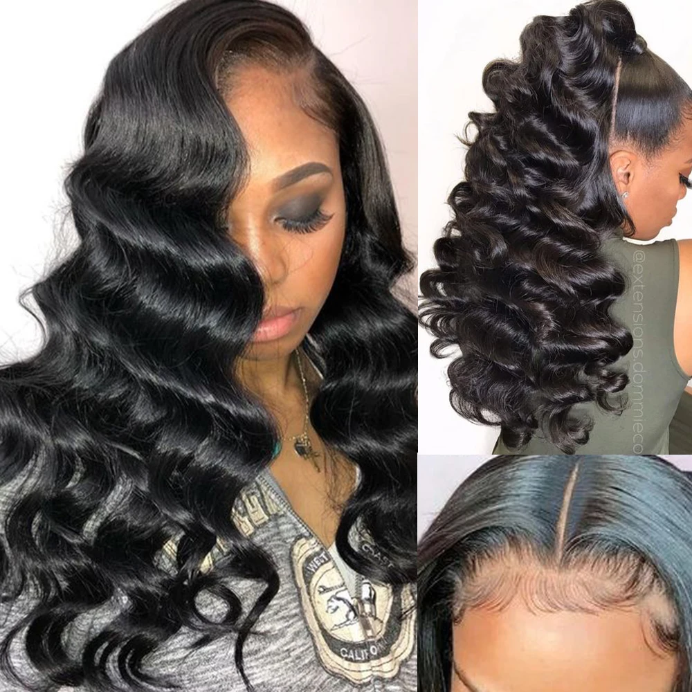 Парики из натуральных человеческих волос, прозрачные свободные с гл...