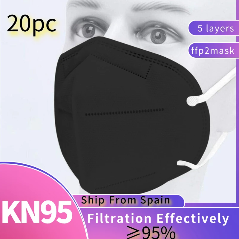Маски fpp2 kn95 черные Защитные 5 слоев, дышащие, для мужчин и женщин, 20 шт.