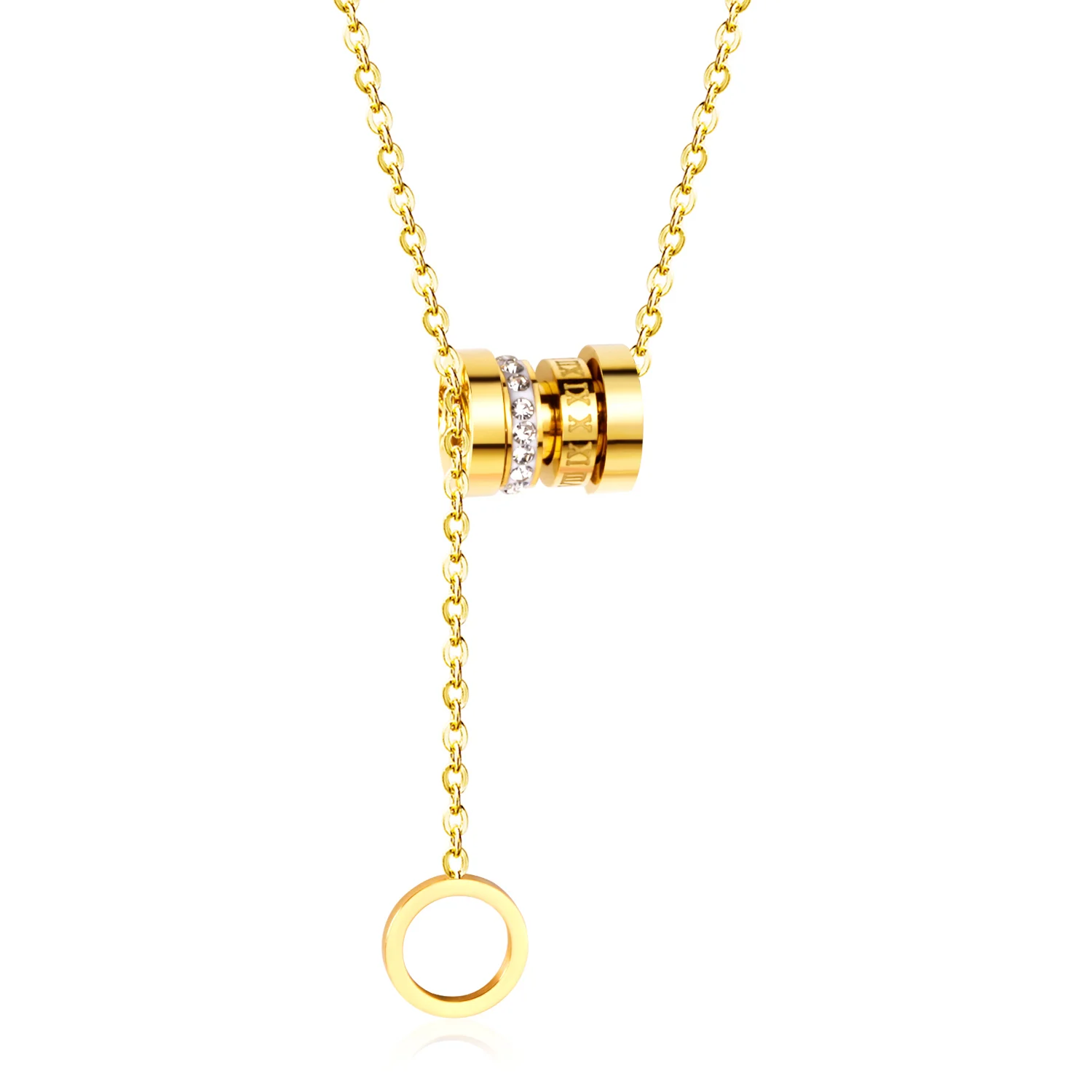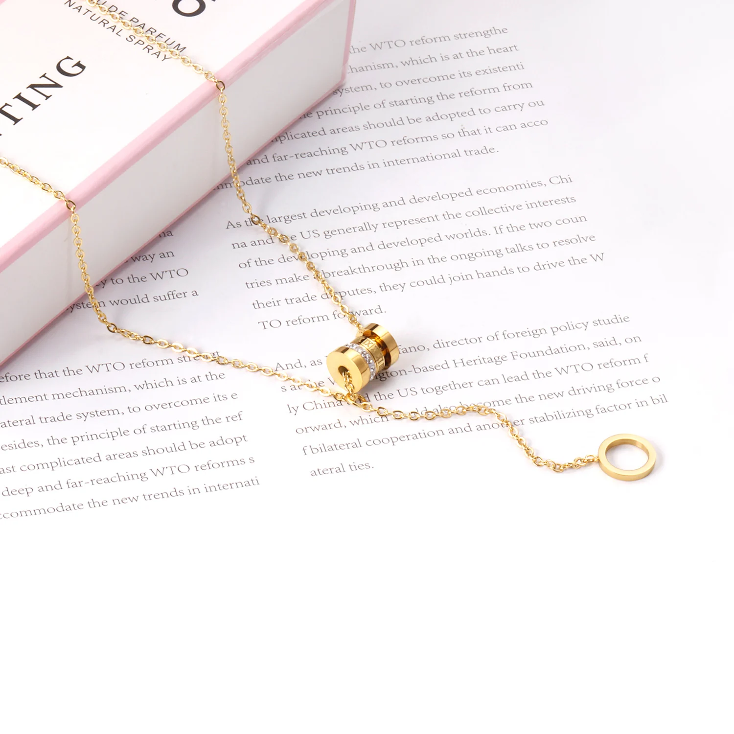 LUXUKISSKIDS циркон круглый кулон нержавеющая сталь звено цепи ожерелье для женщин колье воротники аксессуары-кисточки ювелирные изделия