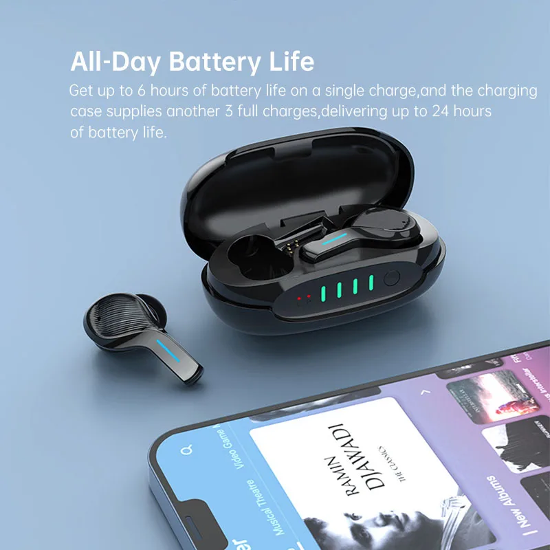 Достаточно энергии, чтобы прослужить весь день. Получите до 6 часов автономной работы при одной зарядке, а чехол для зарядки поставляет еще 3 полных заряда, обеспечивая до 24 часов автономной работы.