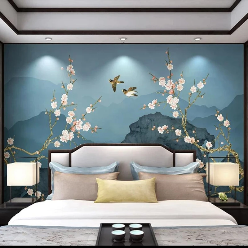 Пользовательские 3D абстрактные Чернила Цветок Птица фотообои Классический китайский стиль кабинет спальня гостиная ТВ фон обои