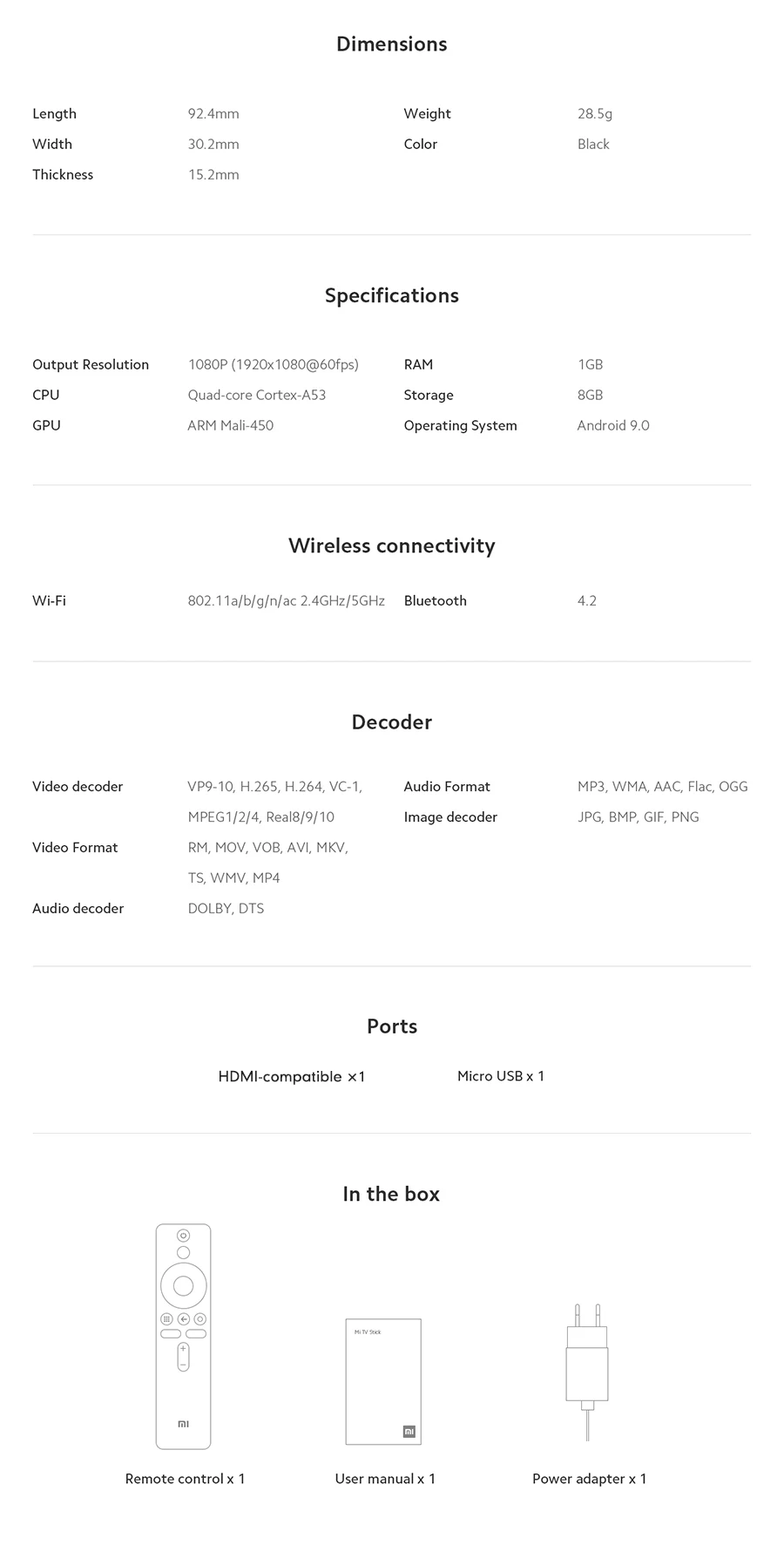 Номер моделиXiaomi Mi TV Stick