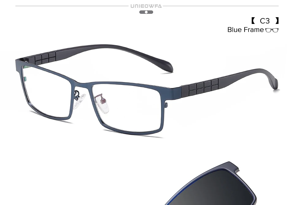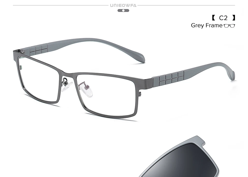 Очки мужские в магнитной оправе с зажимом для близорукости, прямоуг...